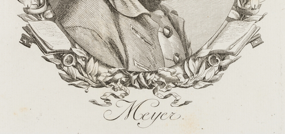 • Inscription: Inscribed below in the printing plate: “Meyer”.