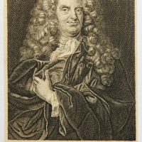 - Description: Standing half portrait in three-quarter profile. The sitter wears a wrinkled antique cloak and a luxuriant allonge wig.