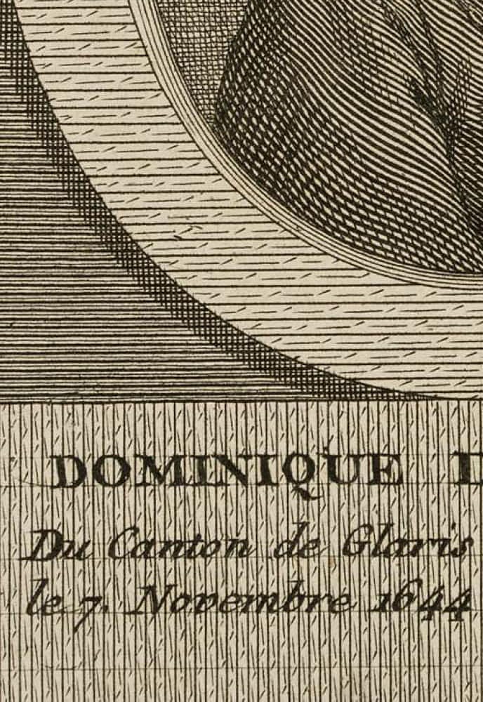 - Beschreibung: Abbildung unterhalb mit dem Namen des Abgebildeten “DOMINIQUE DE TSCHUDI” bezeichnet, darunter mit “N. 267” nummeriert.