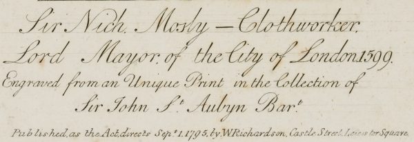 Unbekannt (18. Jahrhundert), Sir Nich Mosly, Clothworker, Lord Mayer of London, 1795, Kupferstich