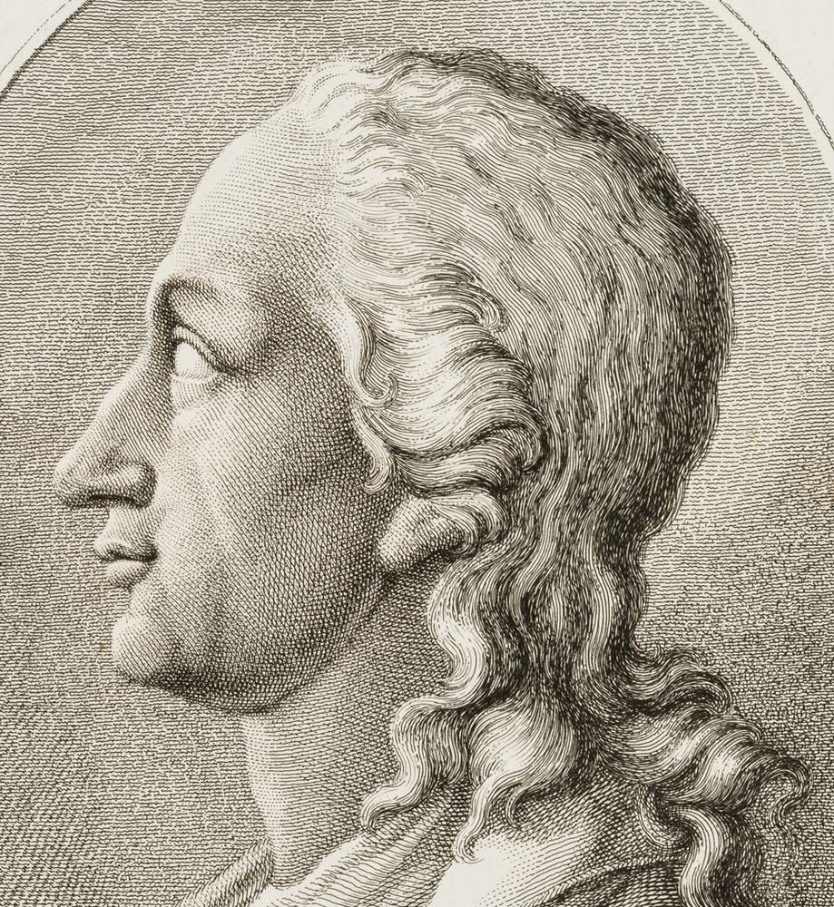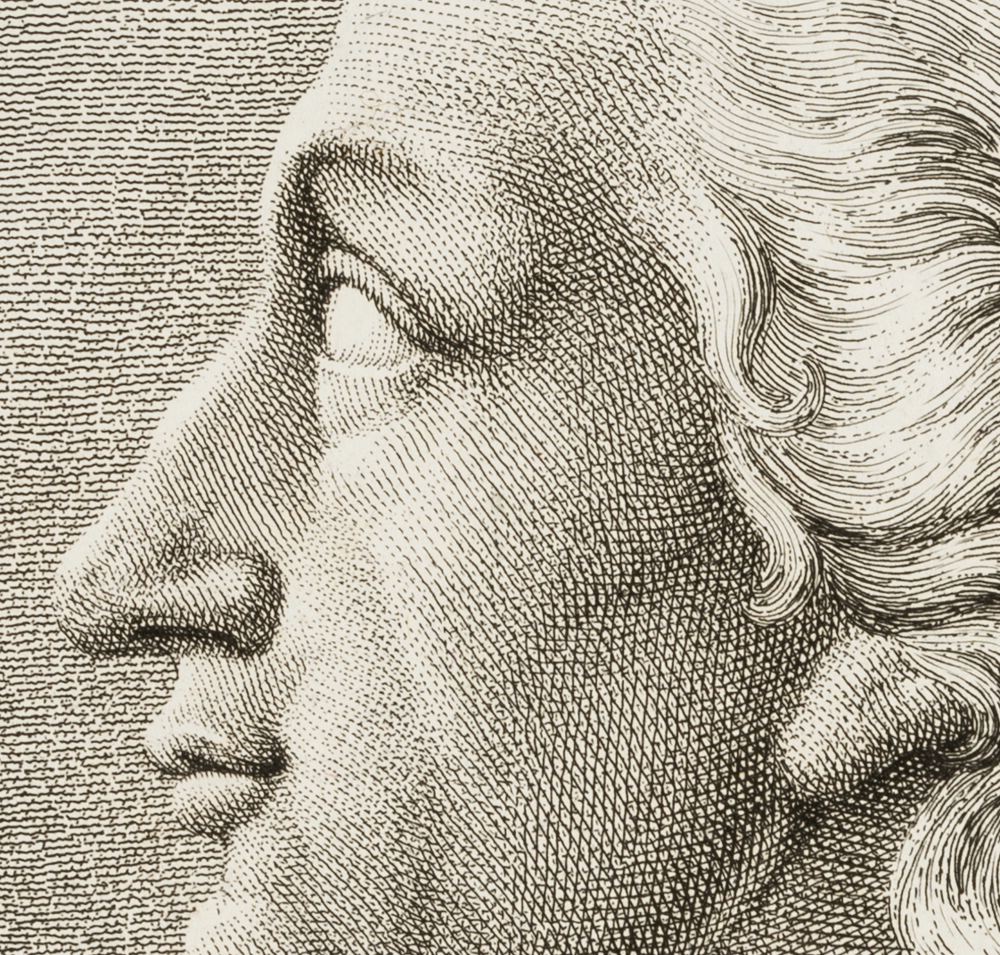 Unknown (18th century), Profile portrait of a man, caricature of the poet Johann Wolfgang von Goethe(?), c. 1775, Etching