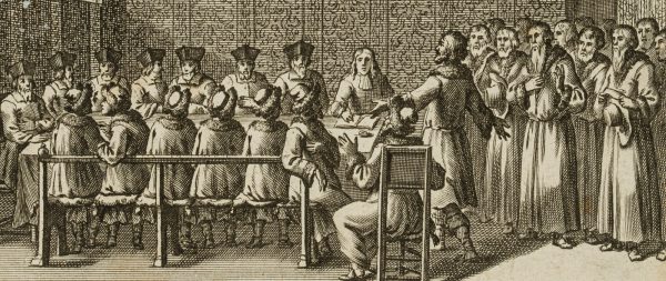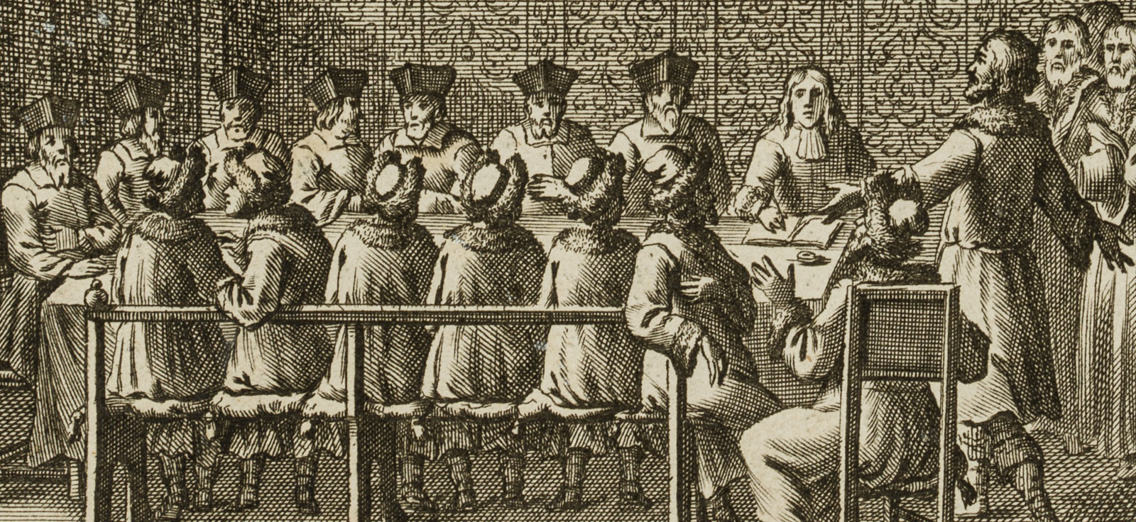 Unknown (18th century), Speaker at a Convention meeting with various church representatives, 18th century, Copper engraving