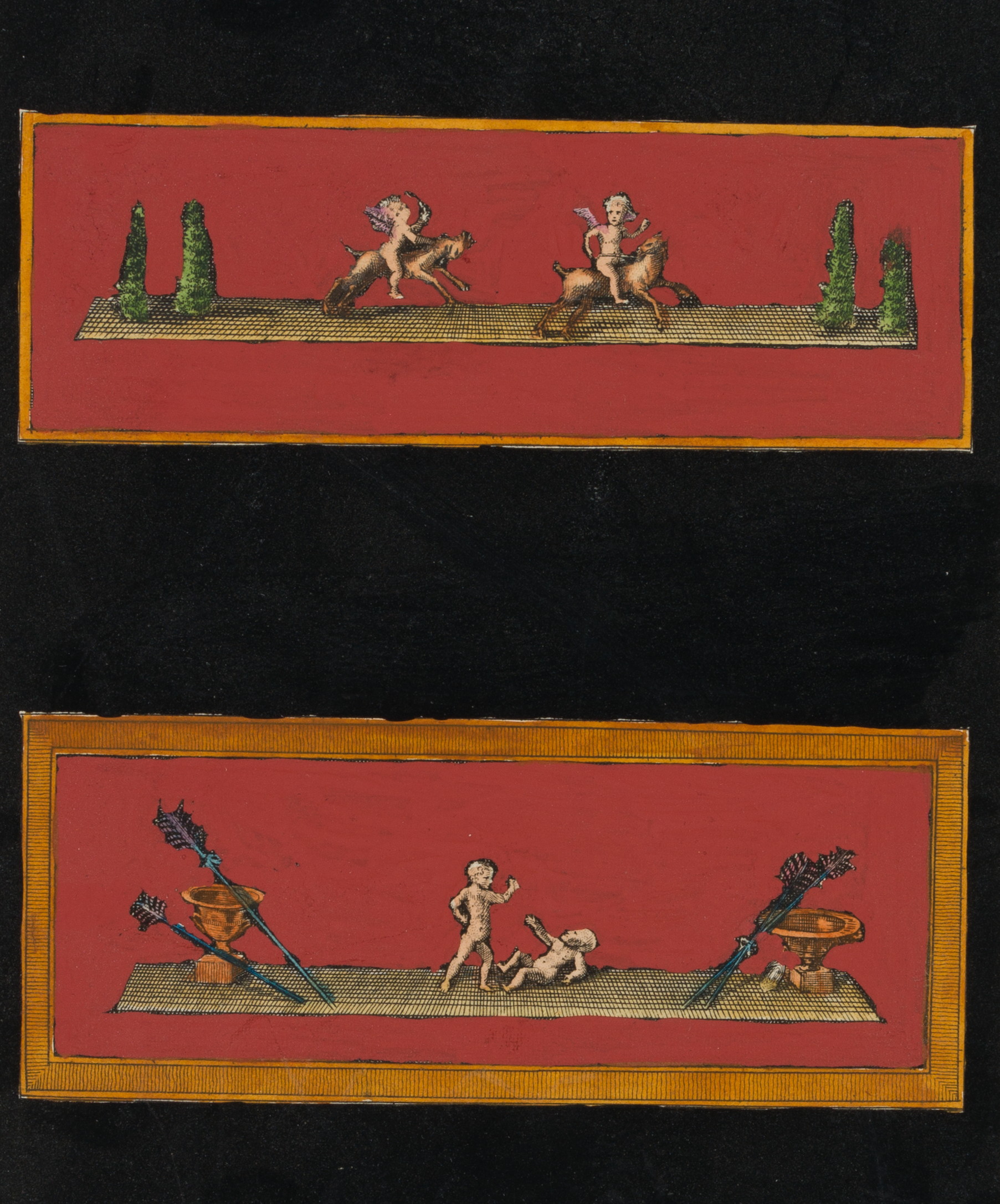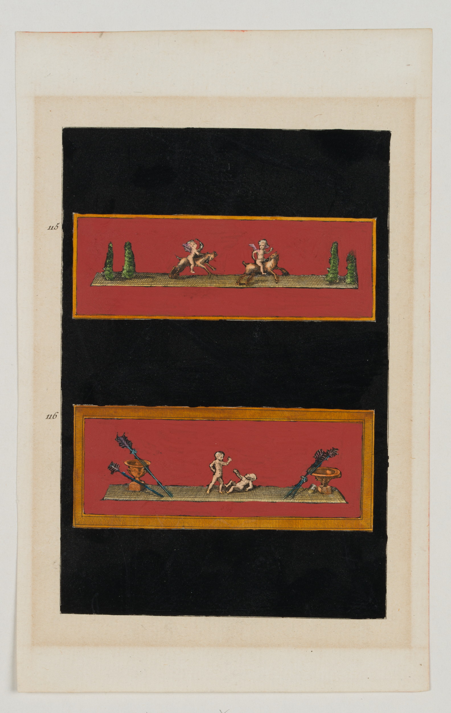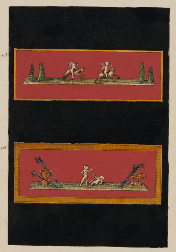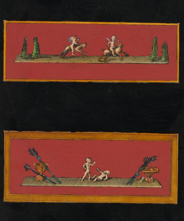 - Keywords: Pompeii, Herculaneum, fresco, antiquity, frieze, ornament, Roman mural, ancient culture, classicism, Pompeian style, putti, children’s play, 18th century, Roman, Mythology, Italy, horse