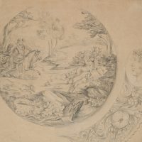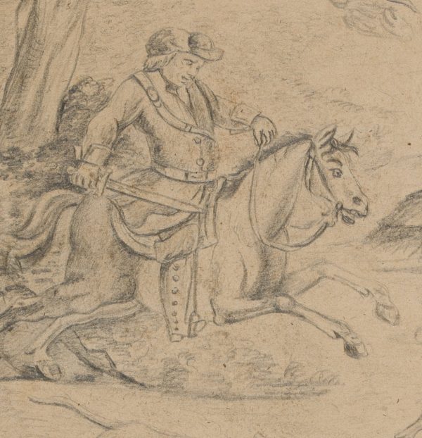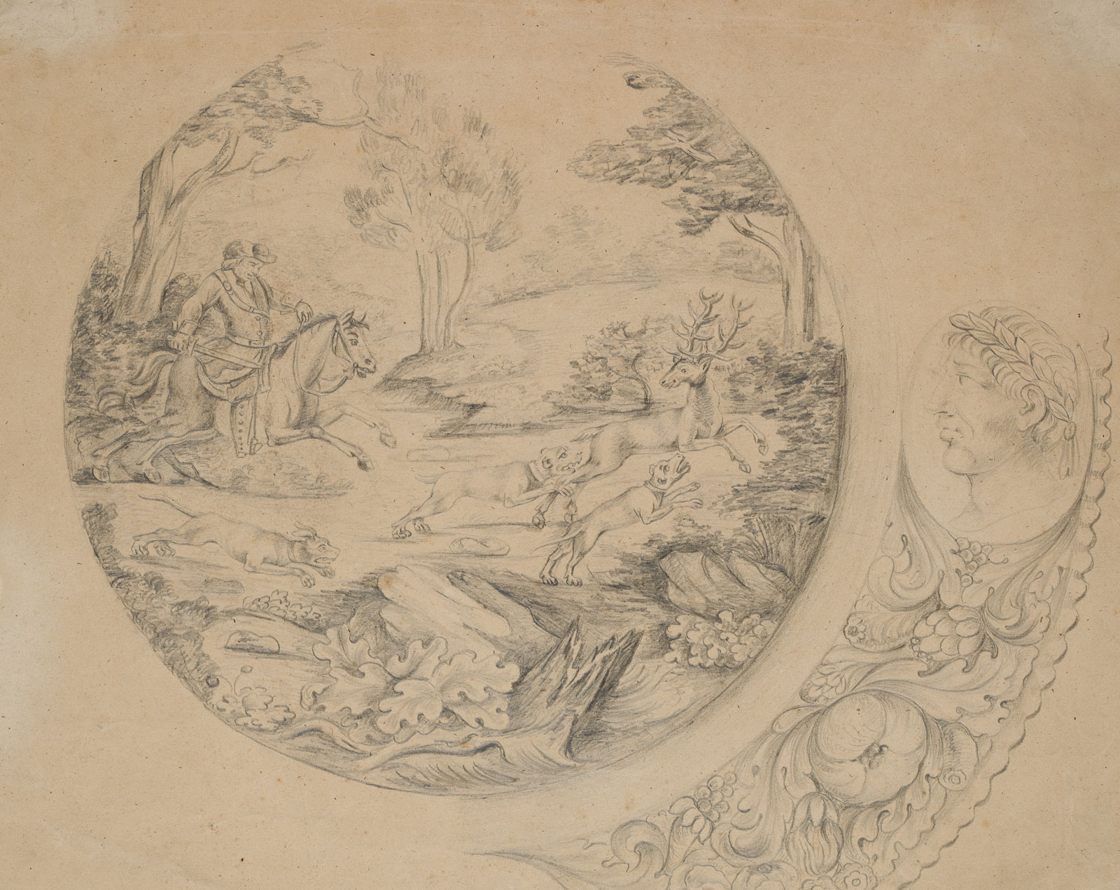 Unknown (18th century), Target design or design for a target crack, stag hunt, c. 1790, Pencil