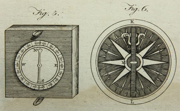 - Beschreibung: Illustrationen zu einem wissenschaftlichen oder naturkundlichen Druckwerk, die schematisch und im Detail einen Grubenkompass darstellen.