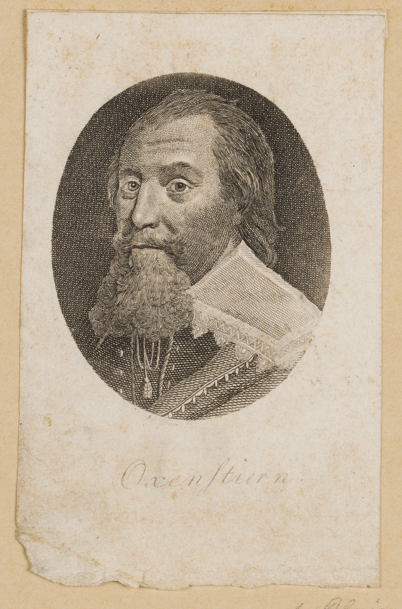 - Beschreibung: Brustbild in Dreiviertelansicht nach links des Grafen und schwedischen Staatsmannes Axel Oxenstierna. 1612 wurde er zum Reichskanzler ernannt. Am Frieden von Knäred, zwischen Dänemark und Schweden, 1613 war Oxenstierna maßgeblich beteiligt. Die Kronländer Livland und Finnland verwaltete Oxenstierna in den Jahren 1614 und 1616 für seinen König quasi als Vize-Regent. Er war wichtiger Diplomat und Stratege im Dreißigjährigen Krieg.