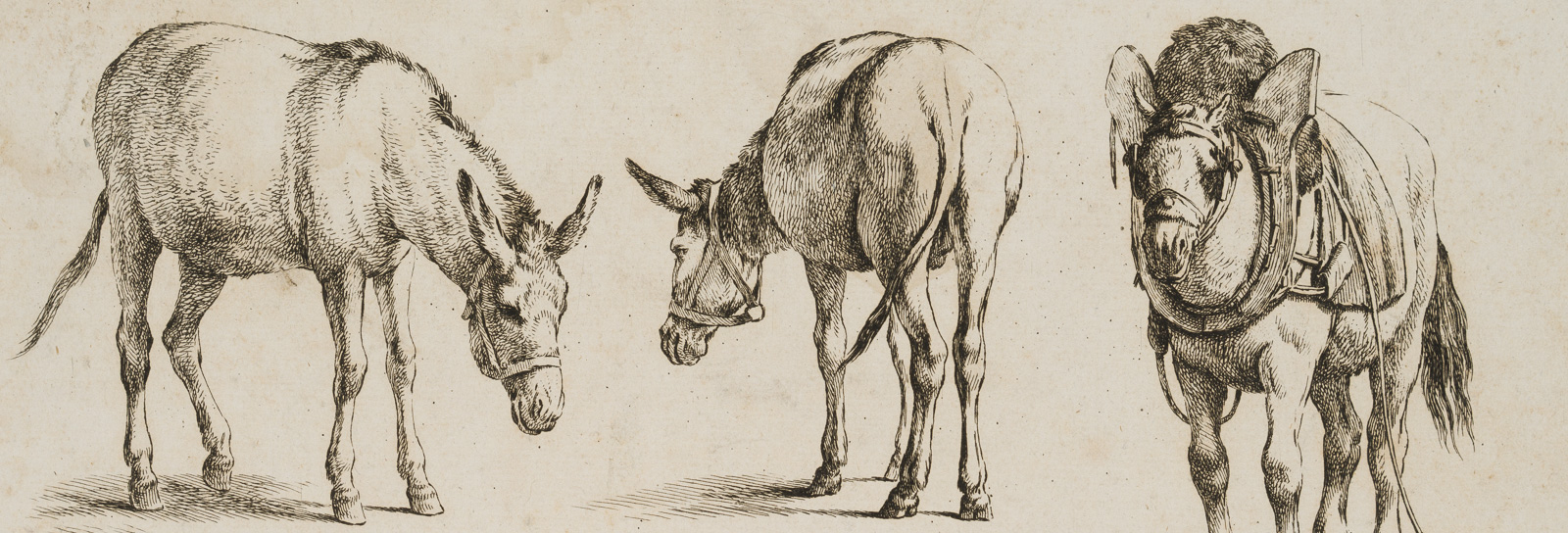 Unbekannt (18. Jahrhundert), Tierstudien, Esel, Hund und Kuh, 18. Jahrhundert, Radierung