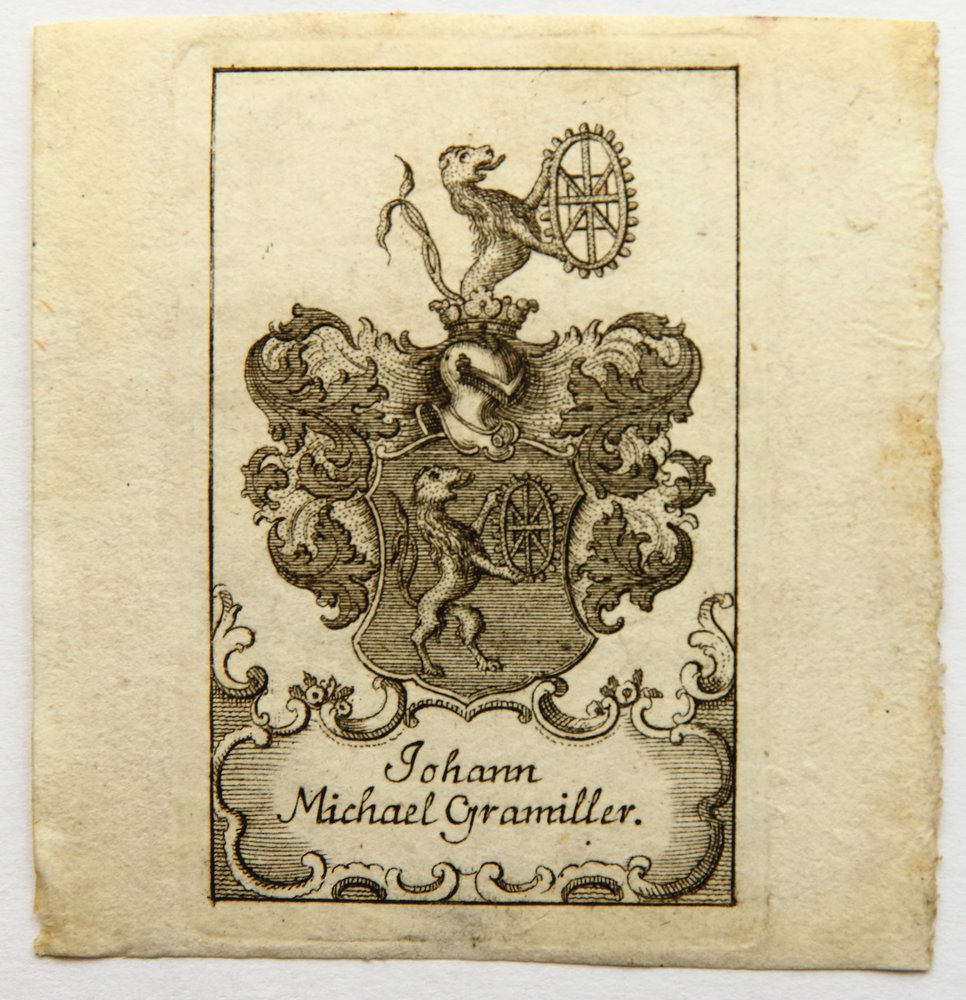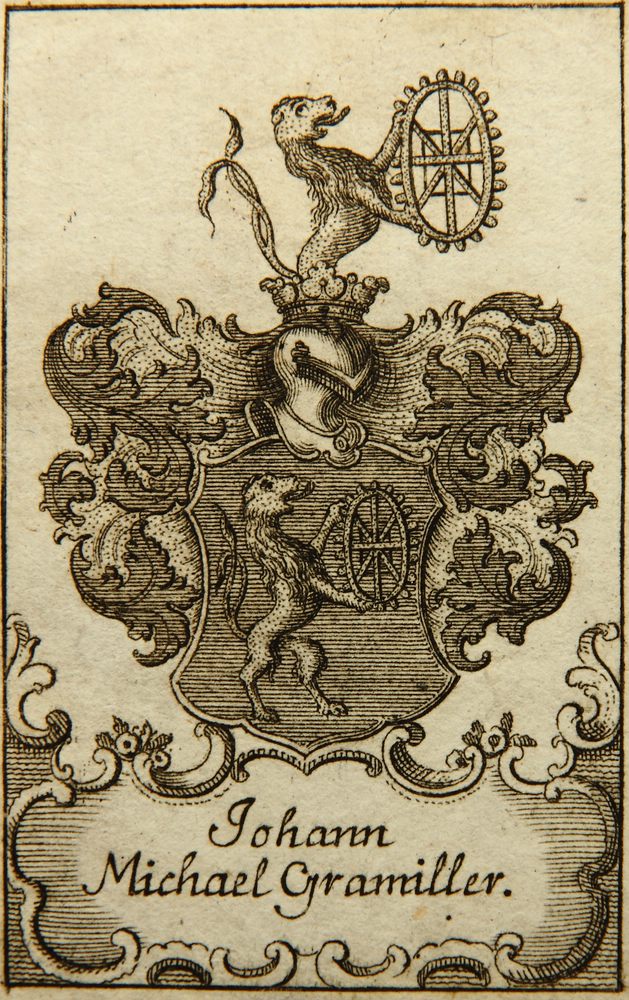- Description: Depiction of Gramiller’s personal coat of arms, possibly as an ex-libris.