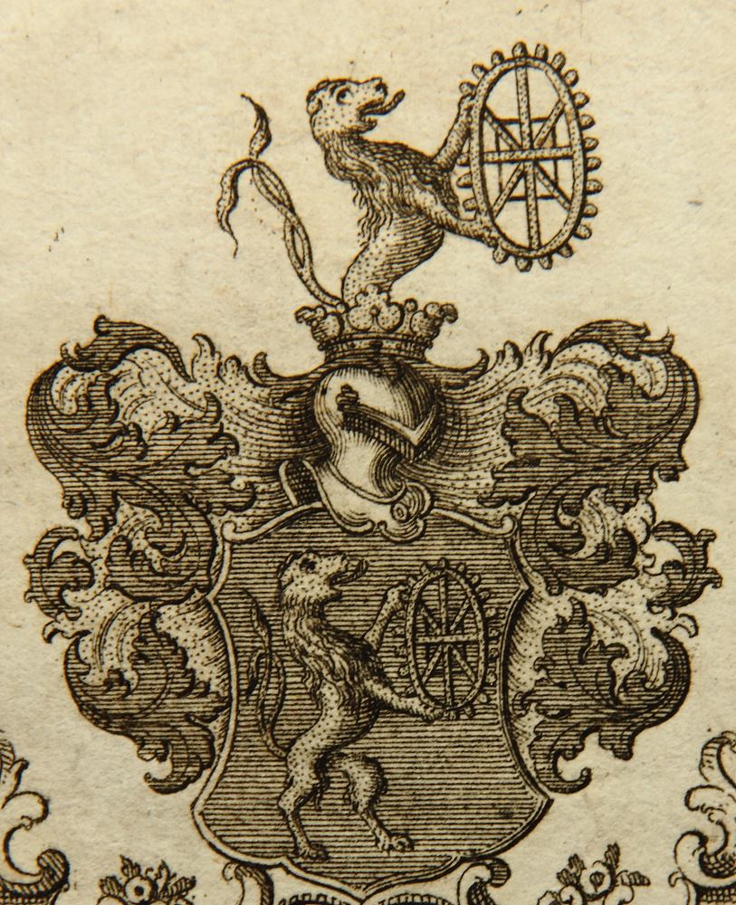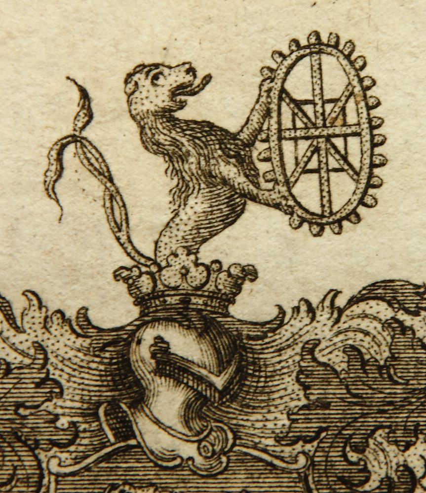 Unbekannt (18. Jahrhundert), Wappen des Johann Michael Gramiller, Stehender Löwe mit Mühlrad, 18. Jahrhundert, Radierung