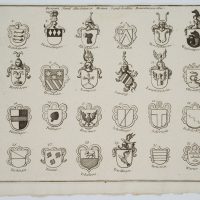 Unknown (18th century), List with coats of arms of villages and families, 1750, Copper engraving