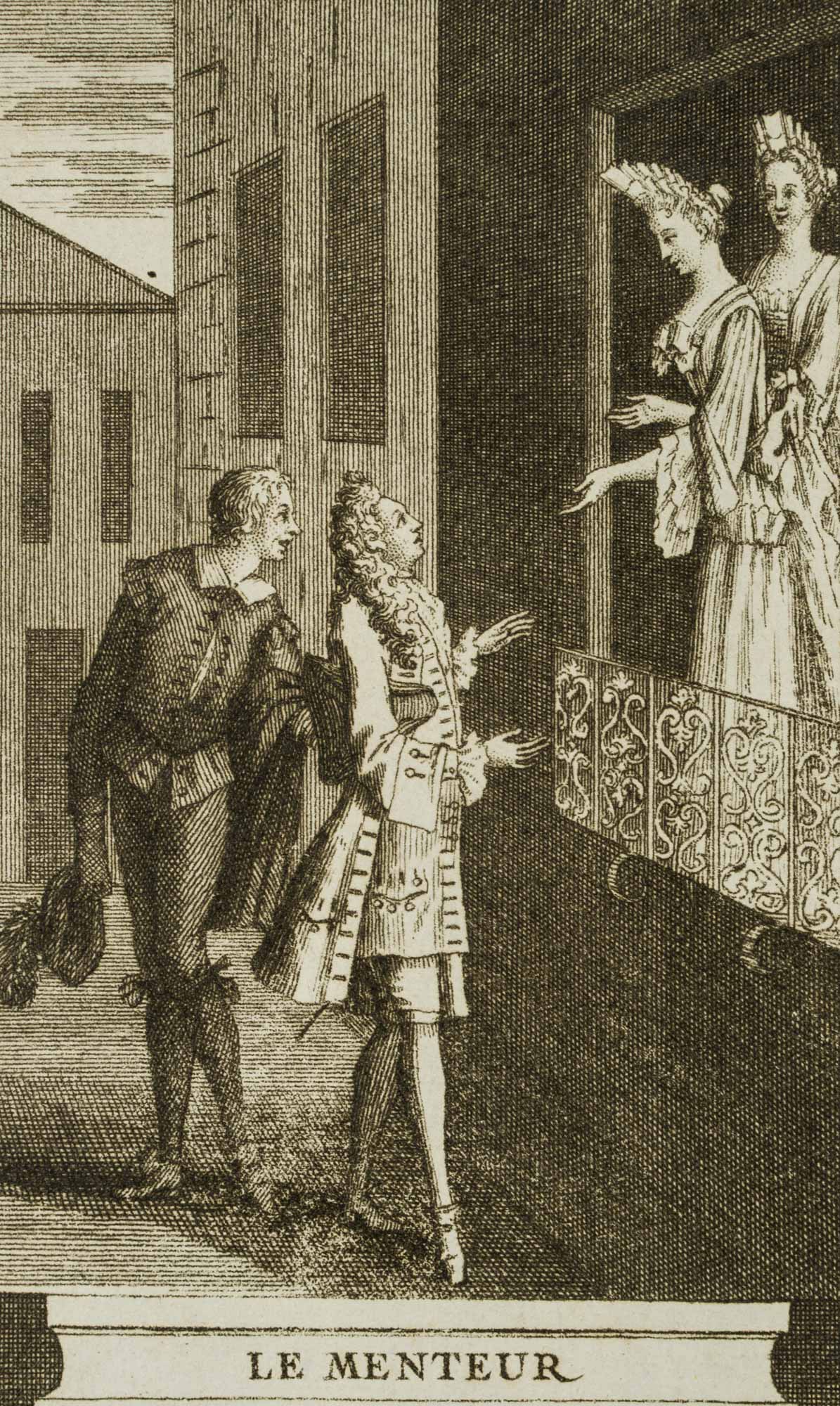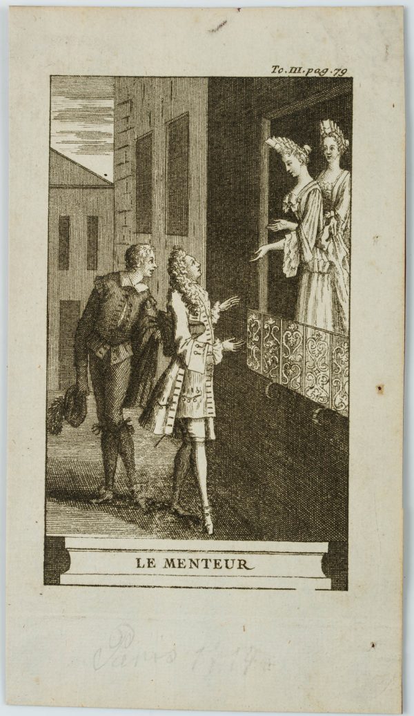 - Bezeichnung: Unterhalb beschriftet mit “LE MENTEUR”. Rechts oberhalb nummeriert mit: “To. III. pag.79”