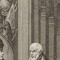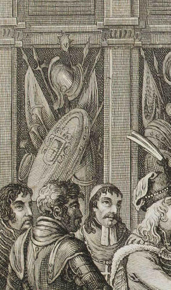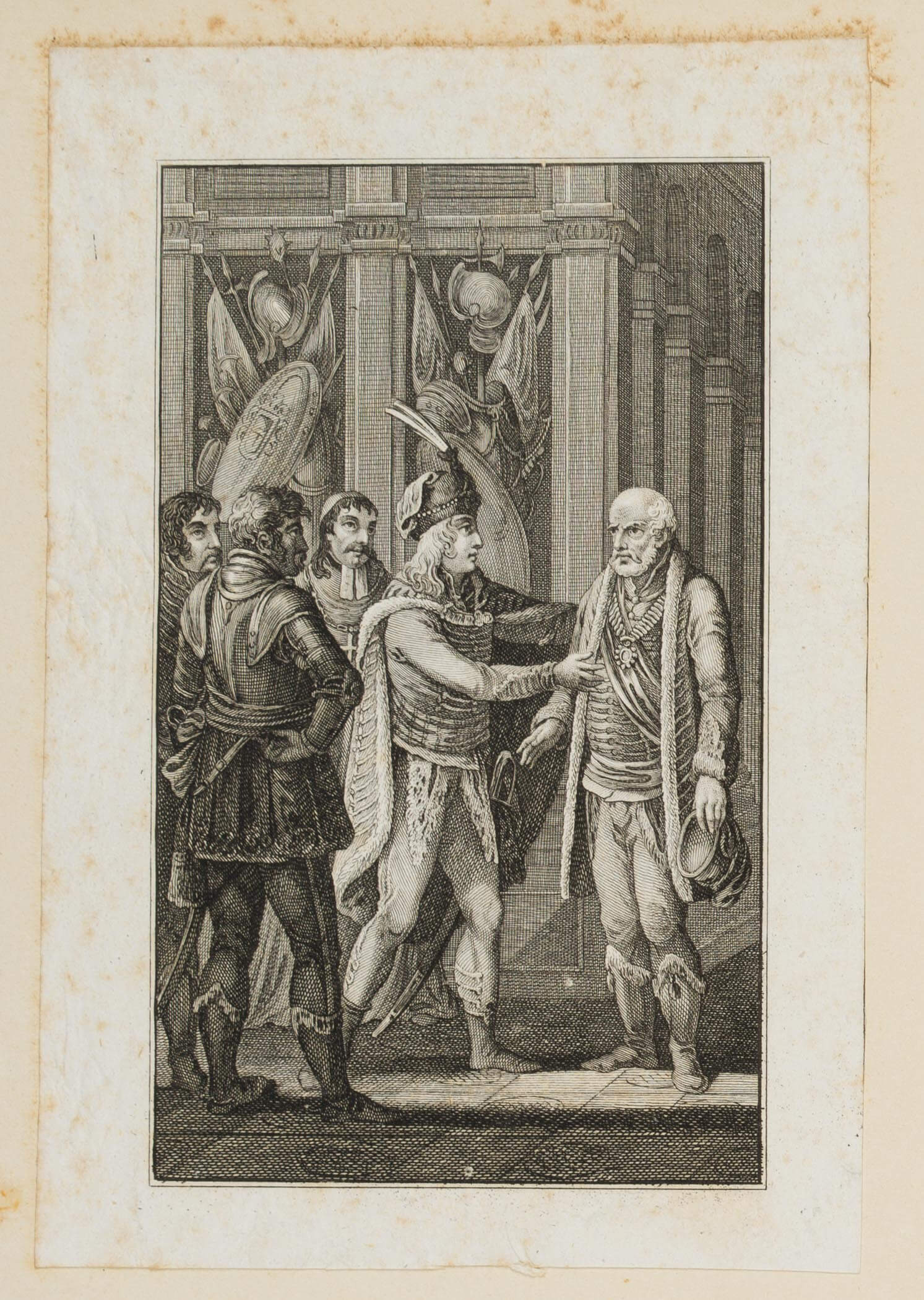 Unbekannt (18. Jahrhundert), Zusammenkunft von fünf Rittern in einer repräsentativen Halle, um 1800, Kupferstich