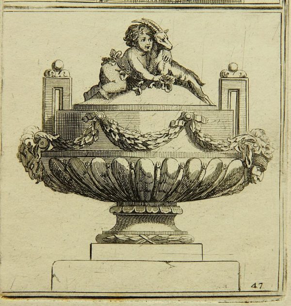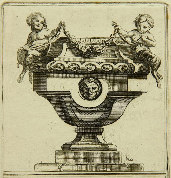 Unbekannt (18. Jahrhundert), Zwei Vasen oder Taufbecken mit figürlichem Schmuck, 1750, Radierung