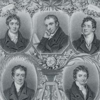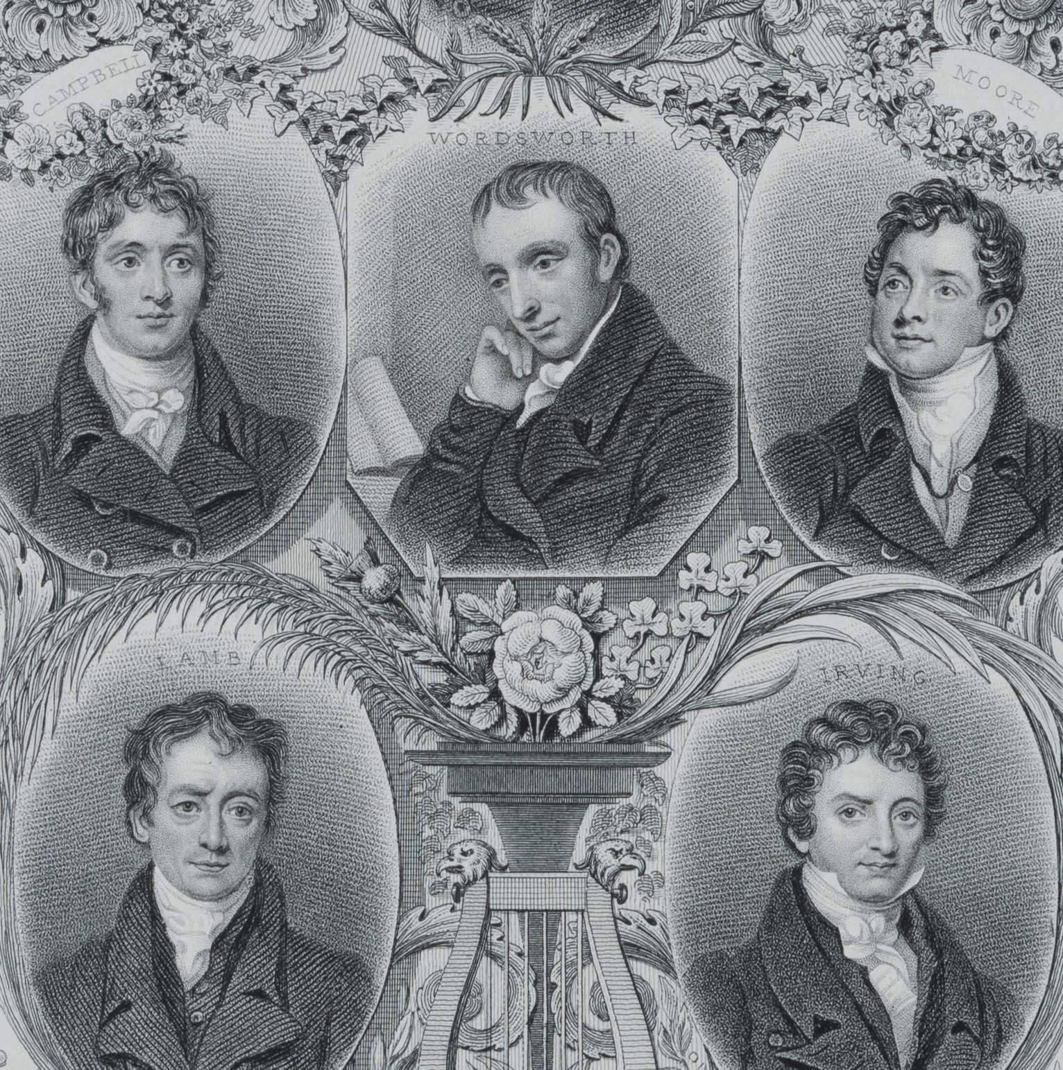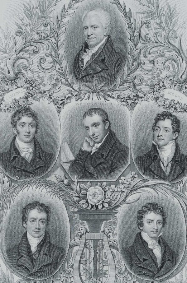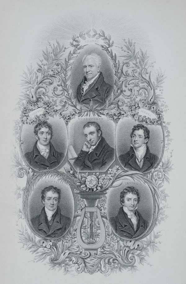 - Beschreibung: Das Blatt zeigt folgende Dichter: George Crabbe, Thomas Campbell, William Wordsworth, Thomas Moore, Charles Lamb, Washington Irving (Amerikaner).