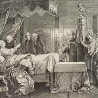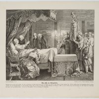 Unknown (19th century), Historical depiction At the Deathbed of Maximilian III 30 December 1777 (1727 in Munich – 1777 in Munich), from the series: Bavarian Images of Princes No 12, 19th century, Wood engraving