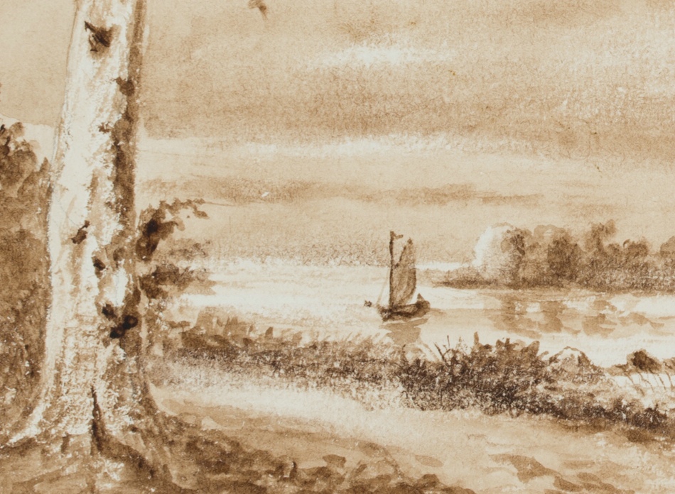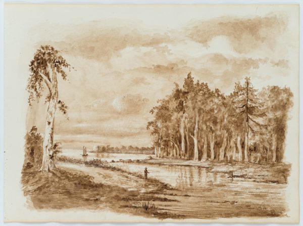 The work comes from the sketchbook of an unknown French artist who travelled in the Netherlands, Belgium and the Rhine region in the mid-19th century, capturing Dutch and Flemish landscapes in particular.