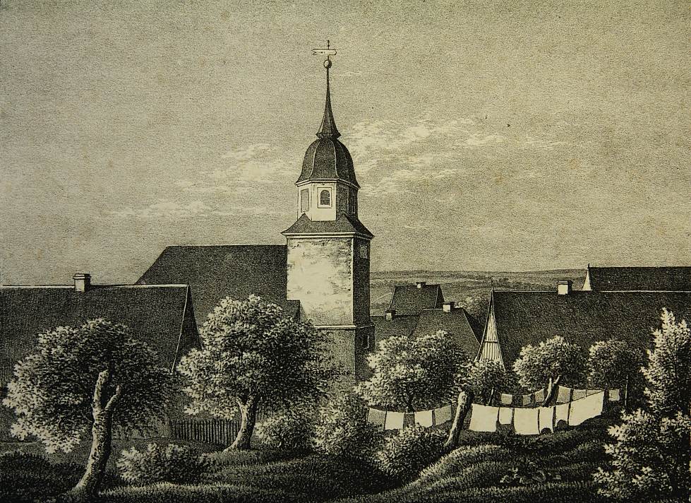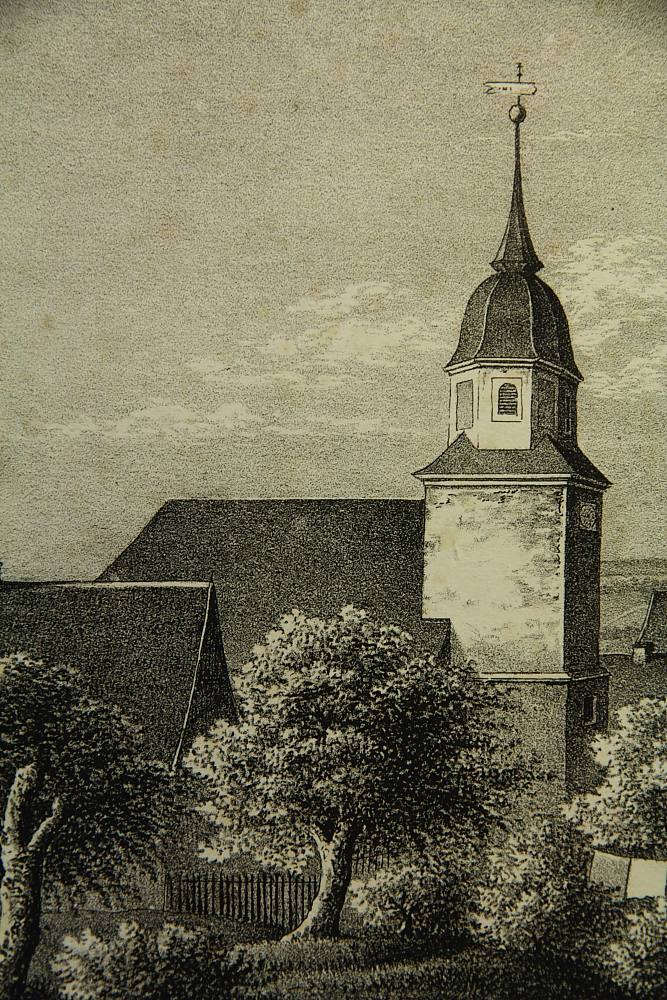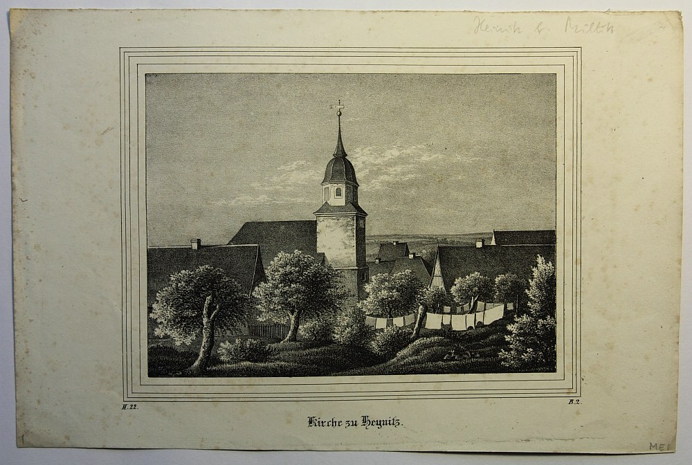 Unbekannt (19. Jahrhundert), Ansicht der Kirche zu Heynitz bei Meißen, 19. Jahrhundert, Lithographie