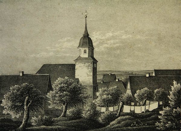 Unknown (19th century), View of the church at Heynitz near Meissen, 19th century, Lithography