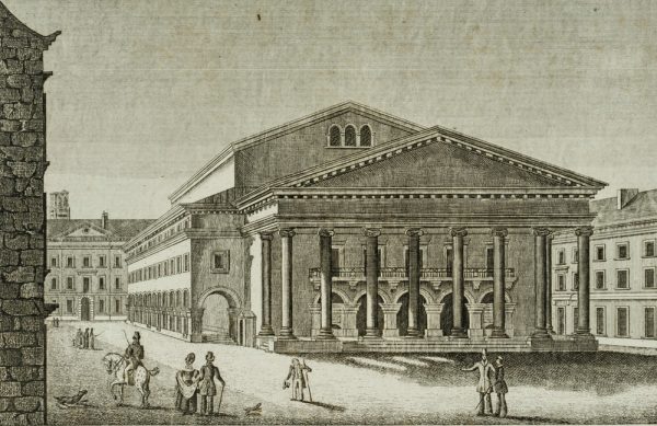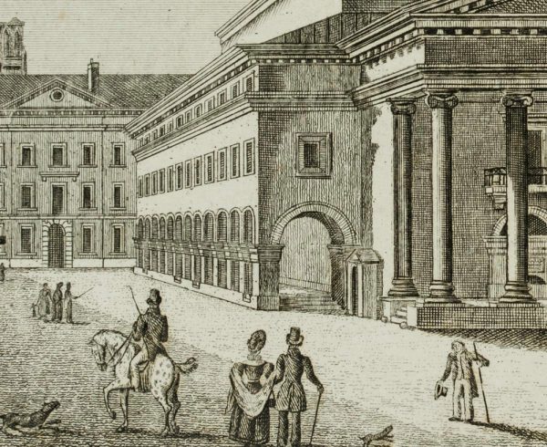 - Beschreibung: ohne Bezeichnung, betitelt “Koenigl. Theater zu Brussel.”. Zu sehen ist die imposante antikisierende Architektur der königlichen Oper in Brüssel. Die Oper de Munt, auf französisch “La Monnaie”, ist eine der besten europäischen Opernbühnen und kann auf eine lange Geschichte zurückblicken. Das erste Opernhaus wurde bereits im Jahr 1700 errichtet, das heutige Gebäude stammt jedoch aus dem Jahr 1855.