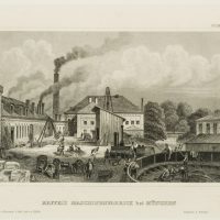 Unbekannt (19. Jahrhundert), Ansicht der Maschinenfabrik Maffei bei München, 19. Jahrhundert, Radierung