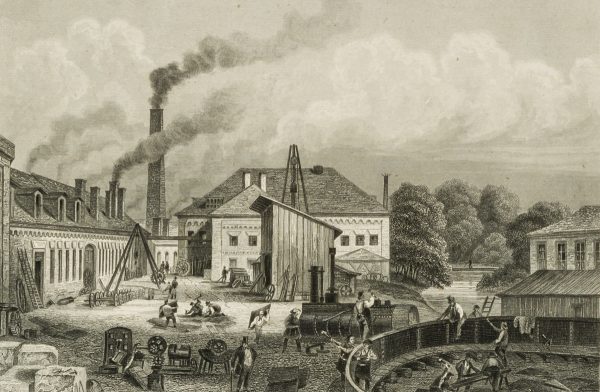 Unknown (19th century), View of the Maffei machine factory near Munich, 19th century, Etching
