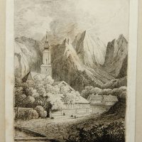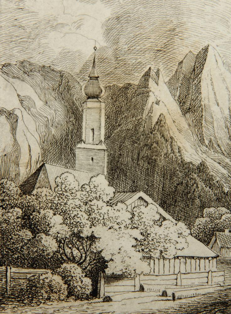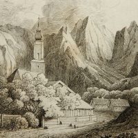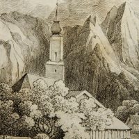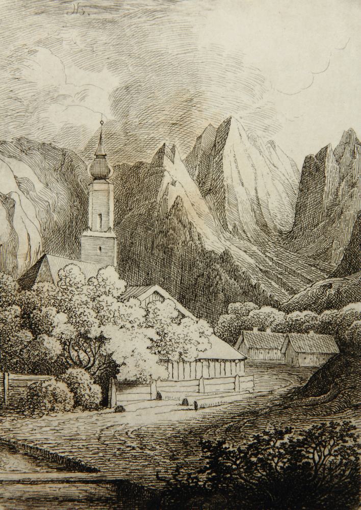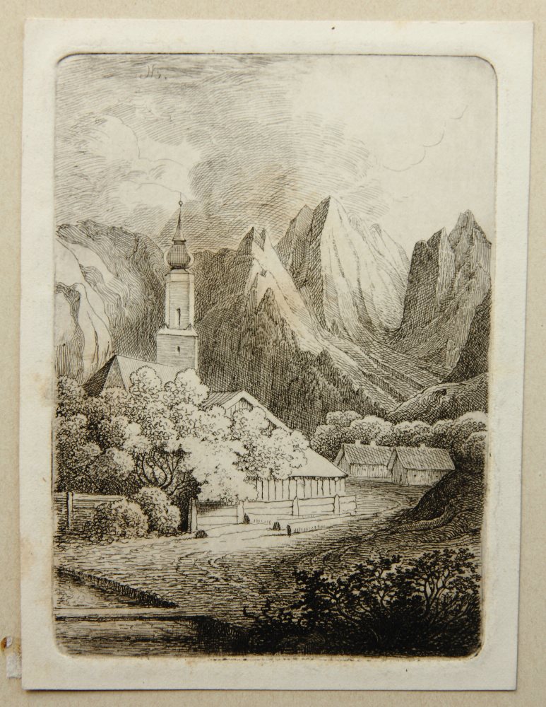 Unknown (19th century), View of the parish church of St Martin in Garmisch, 19th century, Etching