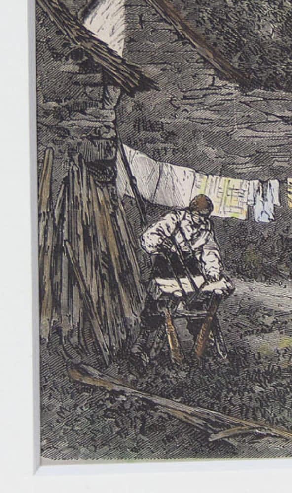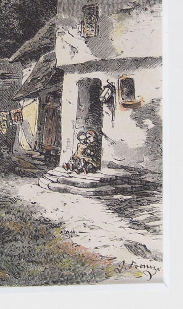 - Technik: Handkolorierter Holzschnitt auf Papier