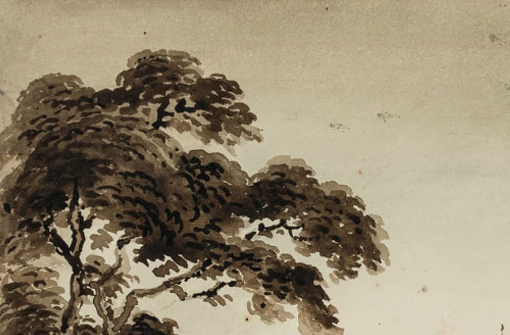- Technik: Aquarell und Tusche auf Papier, montiert auf Papier