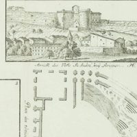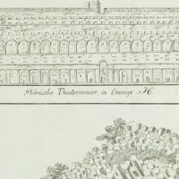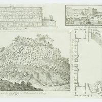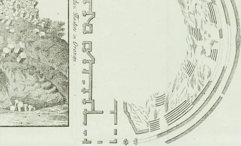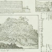 Unknown (19th century), View of a basalt rock and Roman theatre wall, 19th century, Lithography
