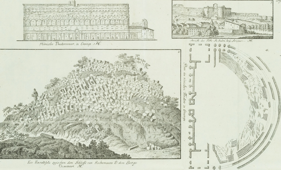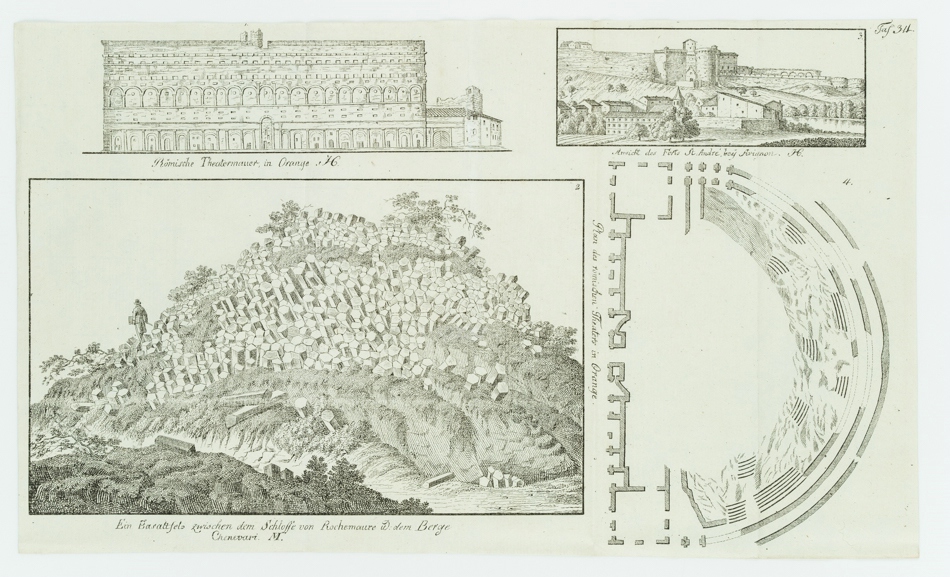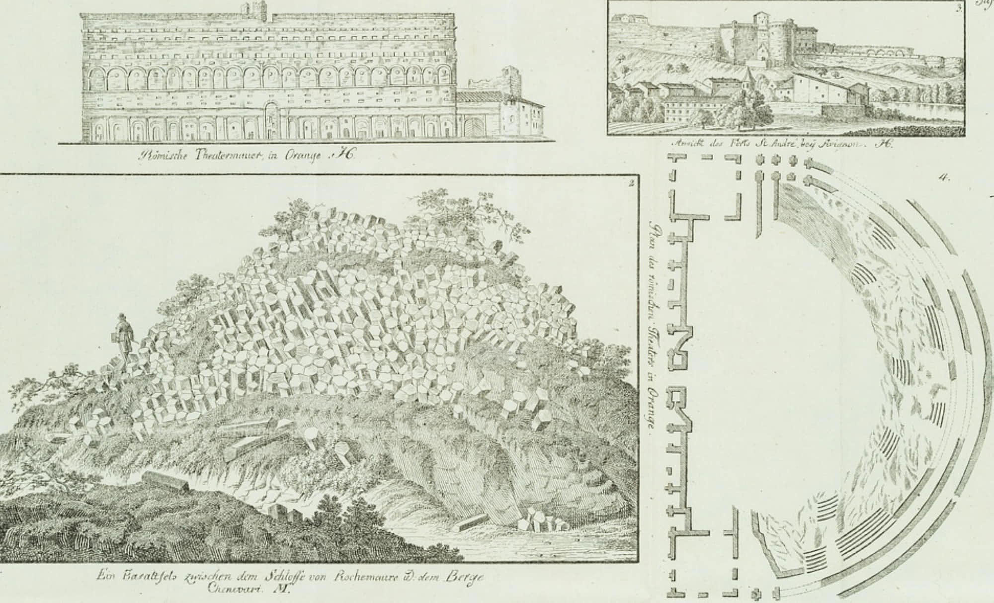 - Schlagworte: Basalt, Basaltformation, Basaltfelsen, Theater, Südfrankreich, Landschaft, Frankreich, Romantik, 1800-1849