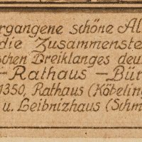 - Beschreibung: Zeigt die Marktkirche 1350, das Rathaus (Köbelingerstr.) 1450, Bürgerhaus und Leibnizhaus (Schmiedestr.) 1650. Betitelt und beschriftet.