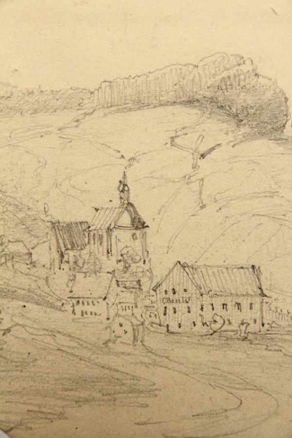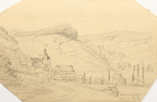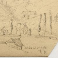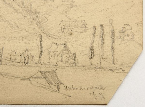 The sheet comes from an anonymous scrapbook containing in particular pencil drawings of architecture and landscape in Germany, especially in the Black Forest and on the Upper Rhine, as well as in Italy, most of which date to the early second half of the 19th century. The unknown artist also shows a certain affinity for railway romanticism and engineering constructions, so that the draughtsman’s professional activity is perhaps to be sought in this environment.