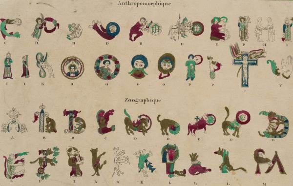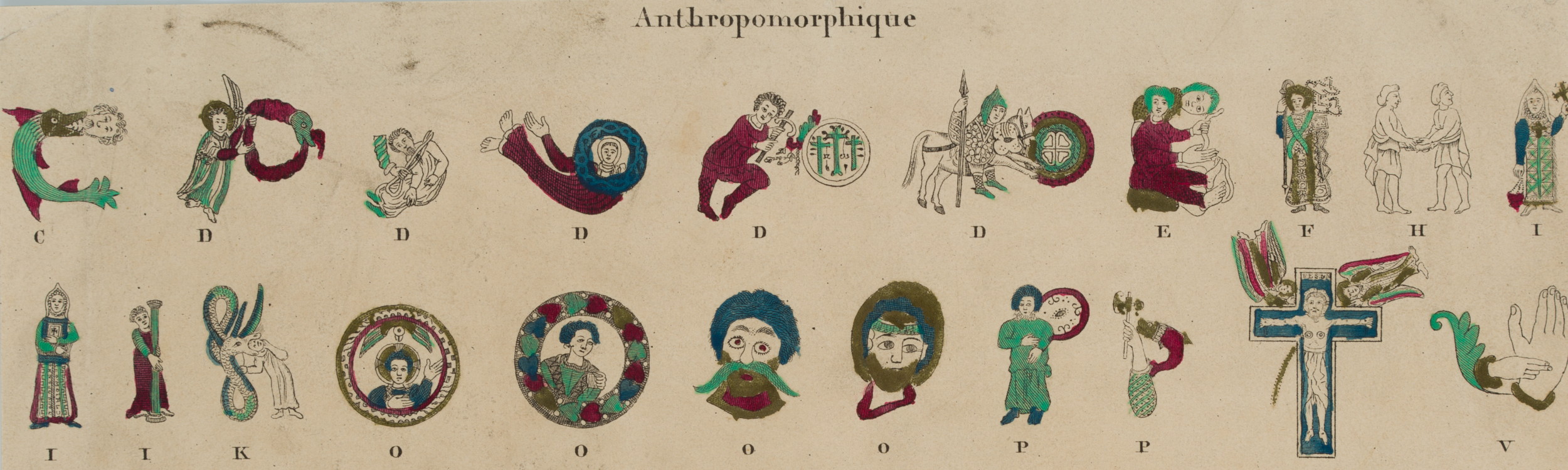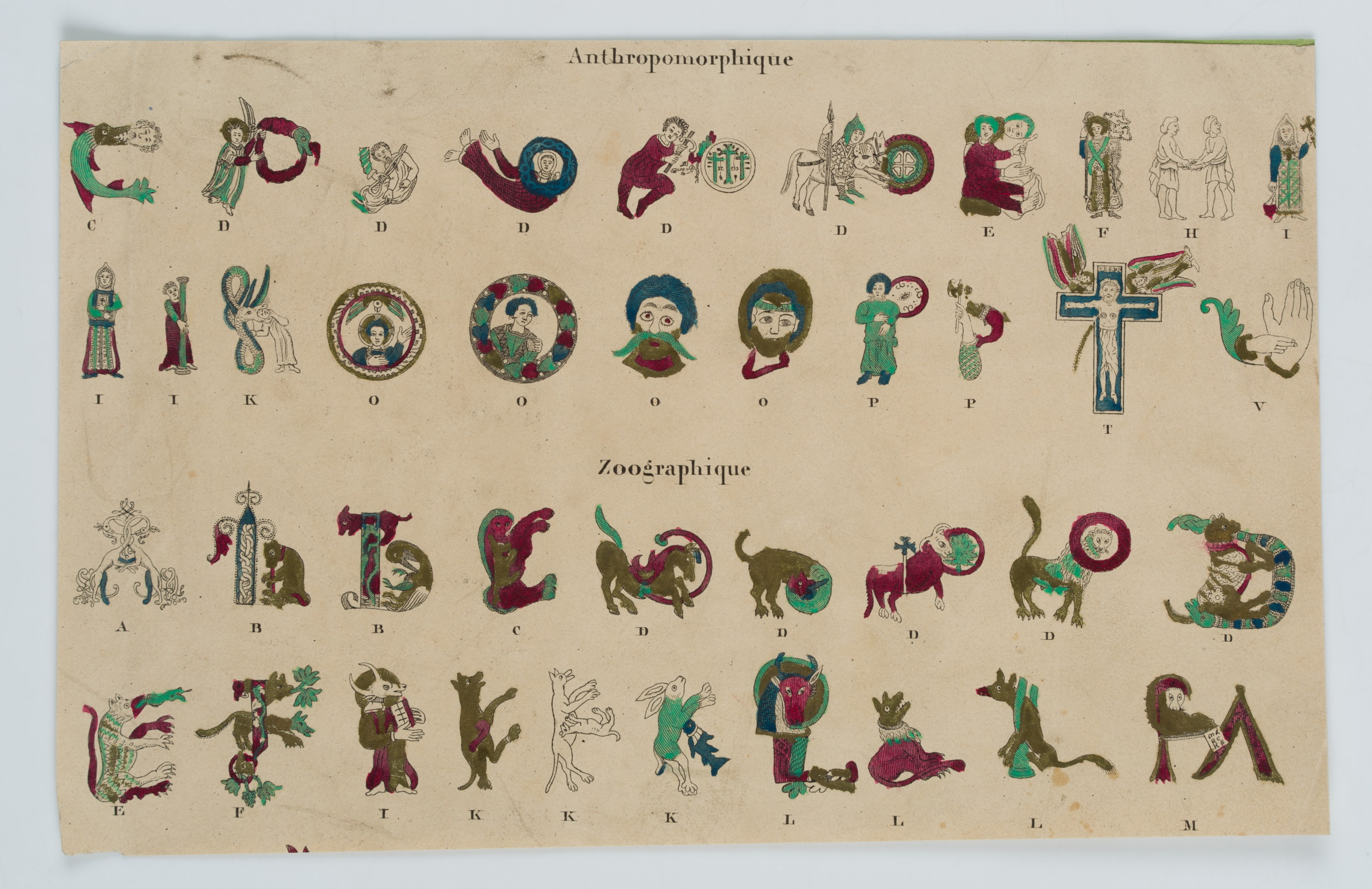 Unknown (19th century), “Anthropomorphique – Zoographique” – representation of an alphabet with letters in the shape of anthropomorphic creatures, c. 1830, Etching