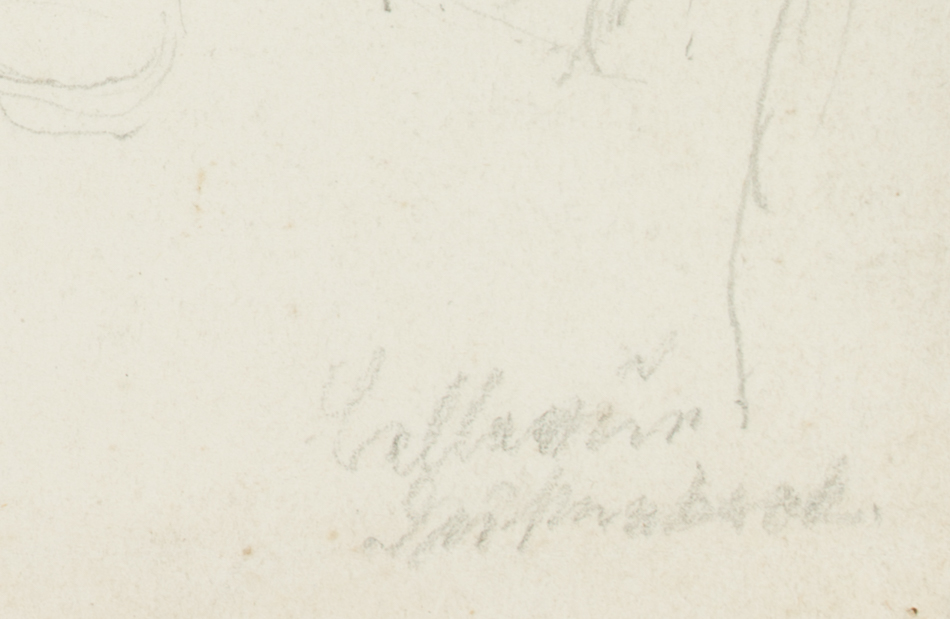 • Inscription: Inscribed by the artist in pencil on the lower right with “Cella[…]” and “Düsternbrook”. The reverse shows a villa in Swiss or Heimat style with floating half-timbered gables. Inscribed by the artist on the lower right with “Düsternbrook”.