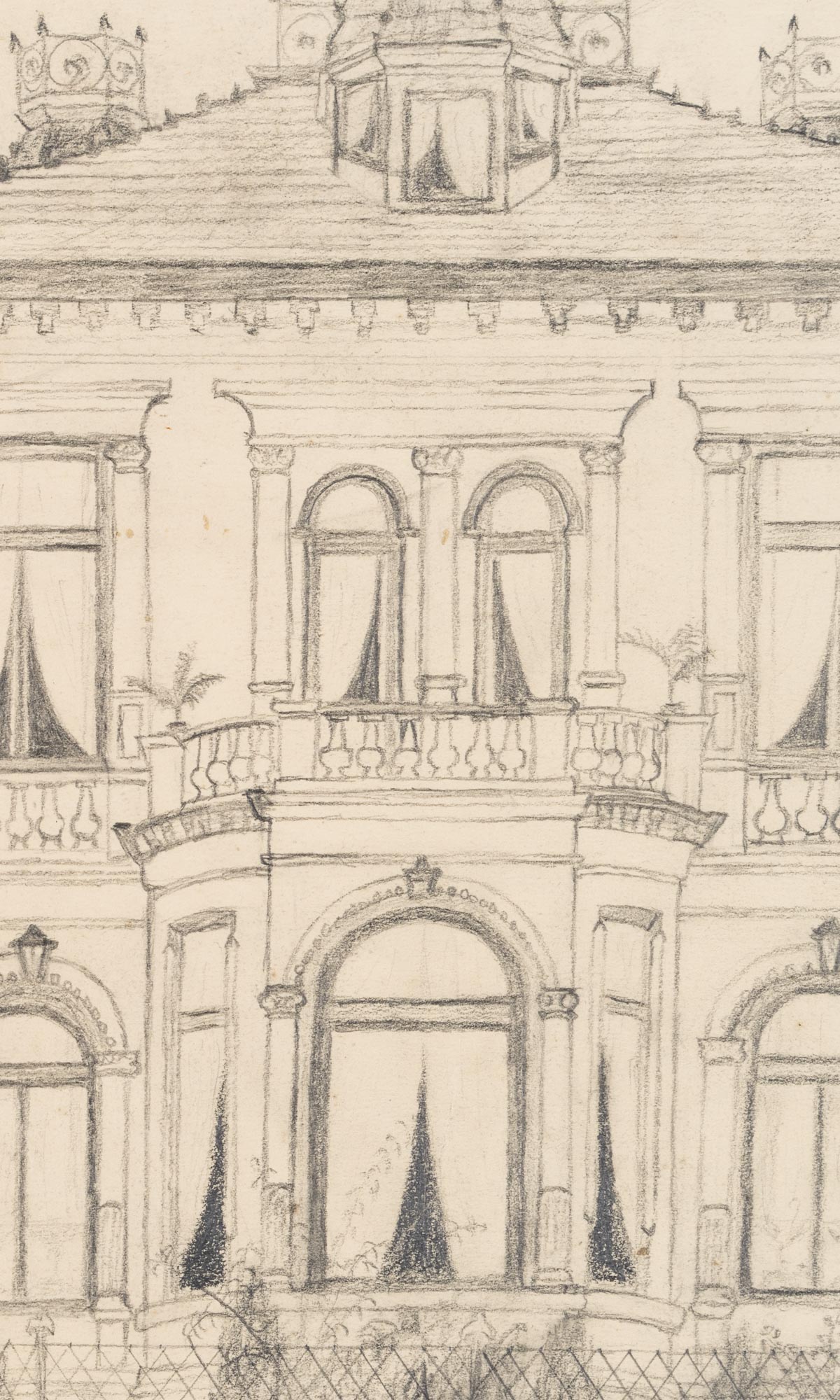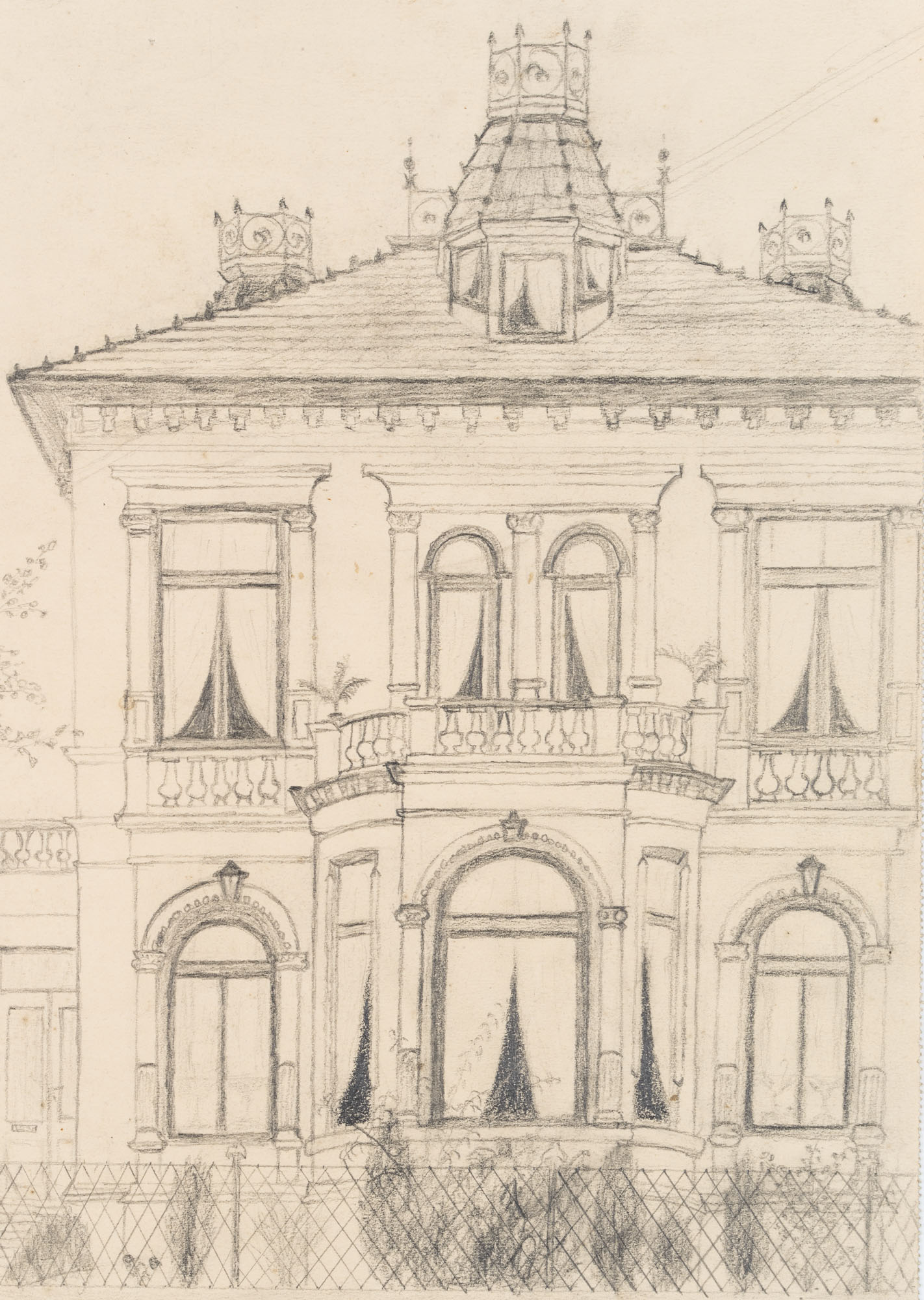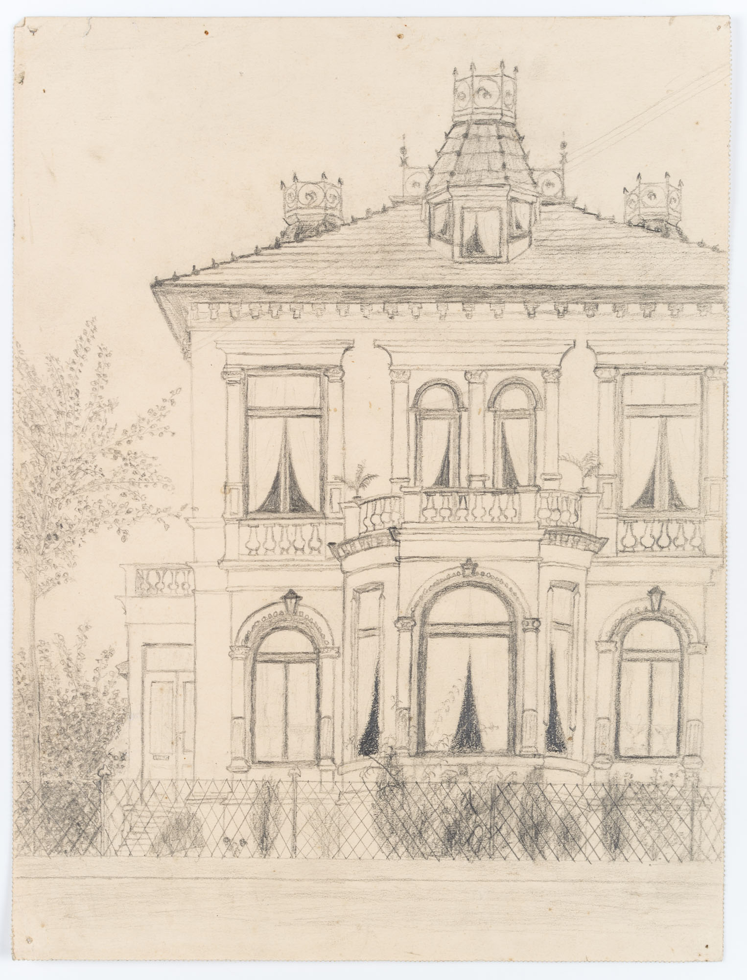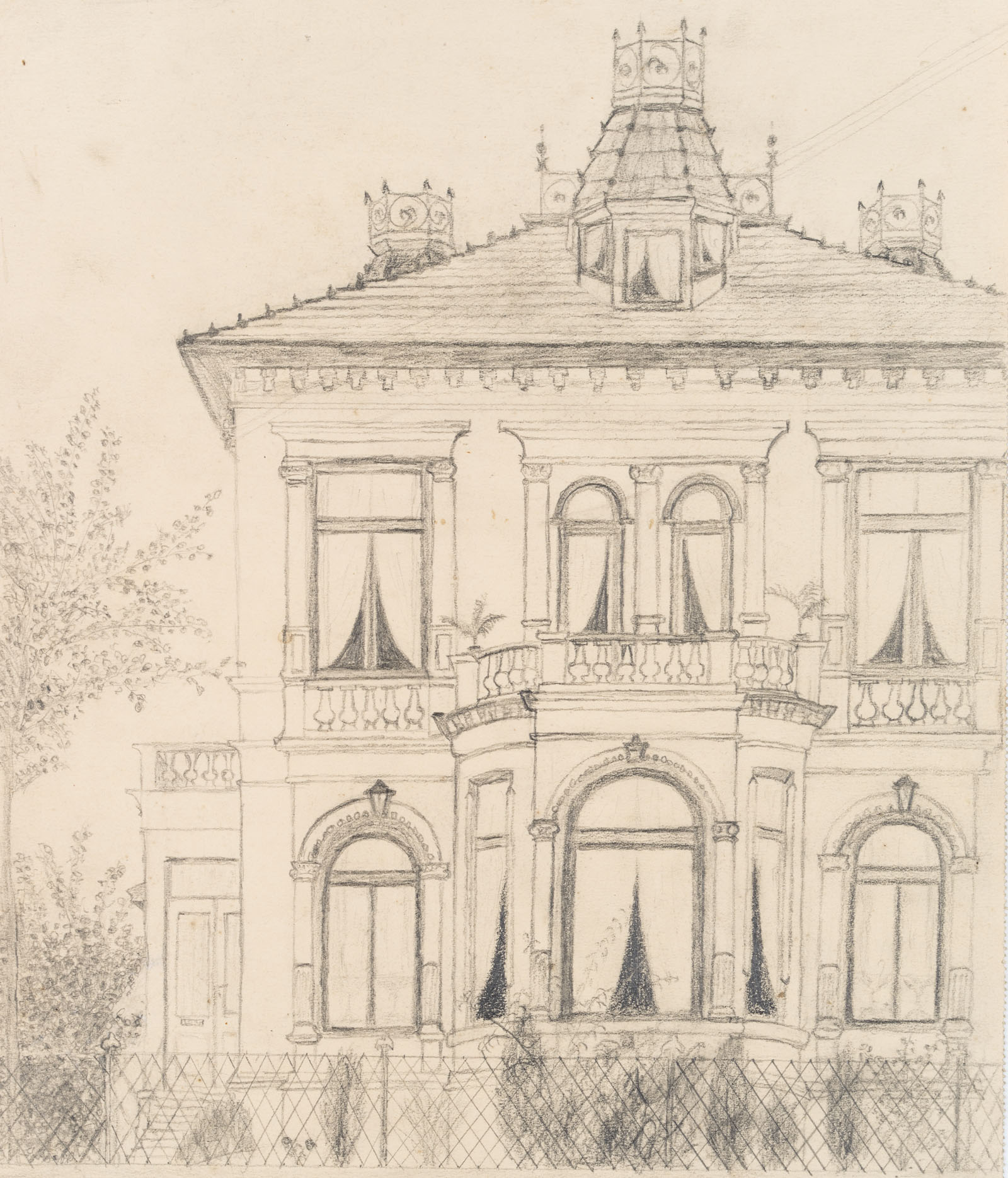 Unknown (19th century), Architectural design, Wilhelminian style villa, c. 1900, Pencil