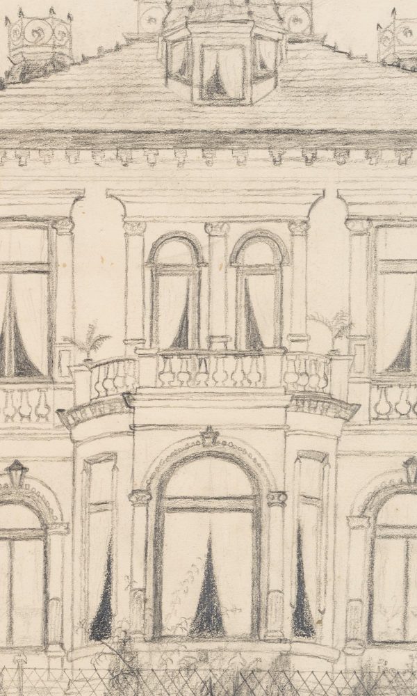 Unbekannt (19. Jahrhundert), Architekturentwurf, Gründerzeitvilla, um 1900, Bleistift