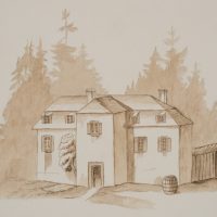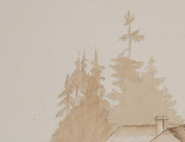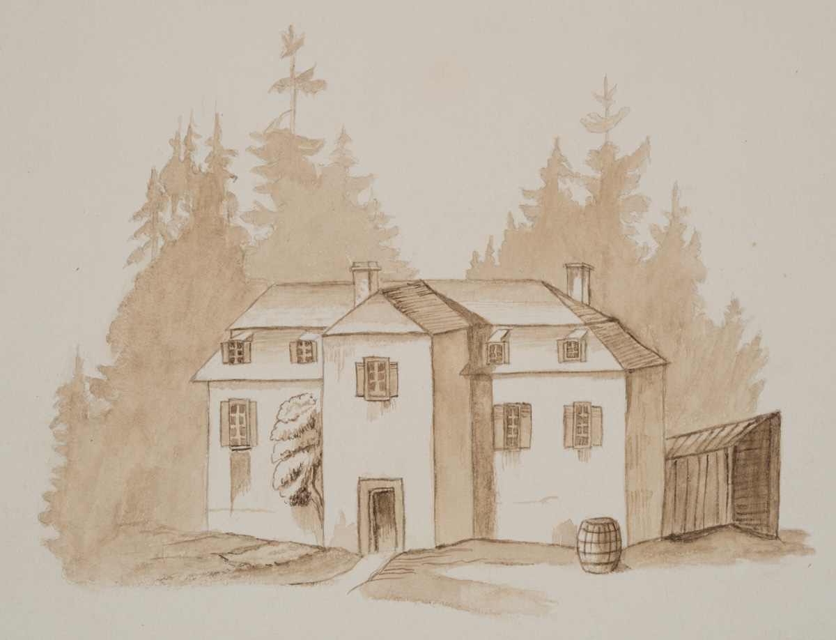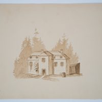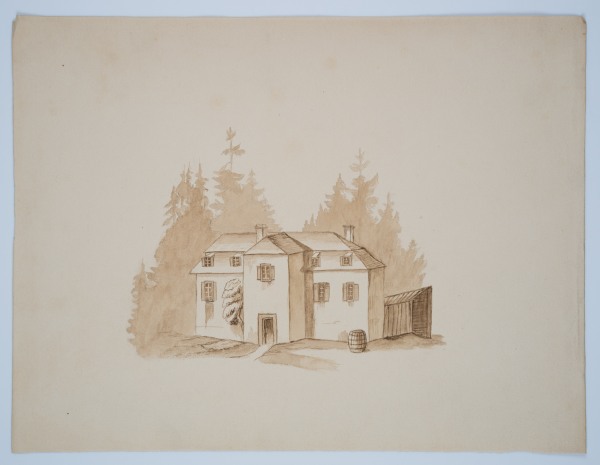 Unknown (19th century), Architectural study of an estate from the front, c. 1872, Brush drawing