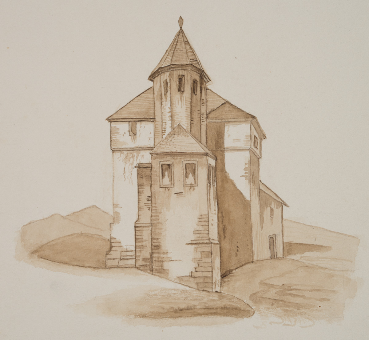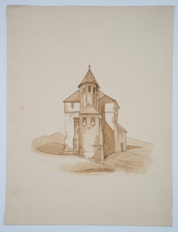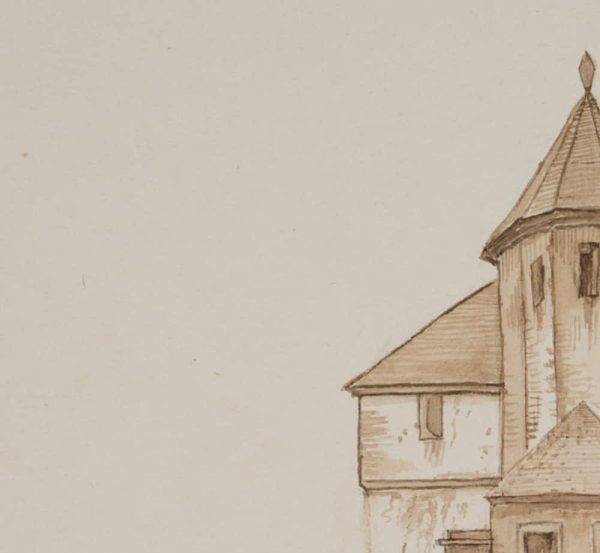 Unknown (19th century), Architectural study of a manor house from the side view, c. 1872, Brush drawing