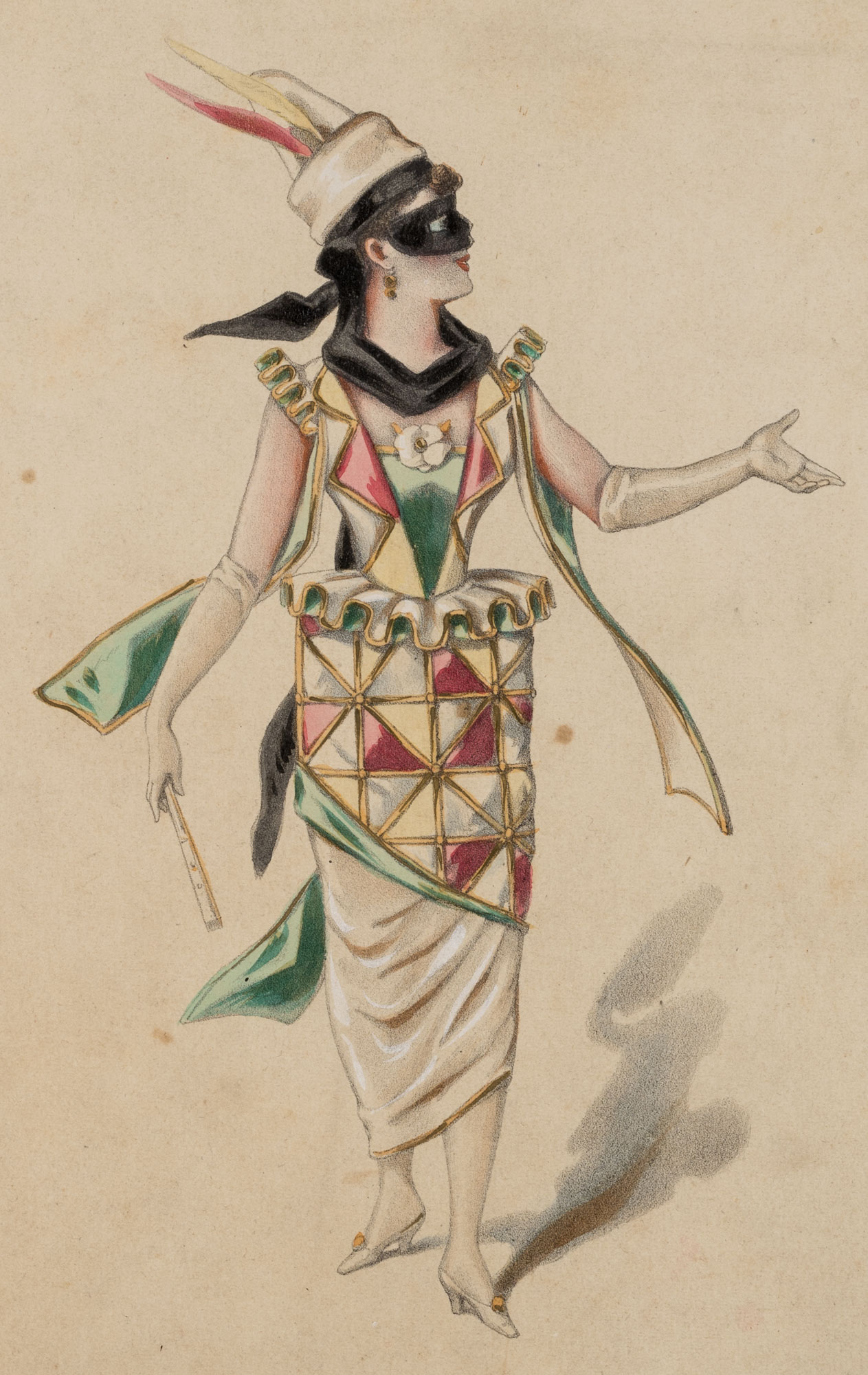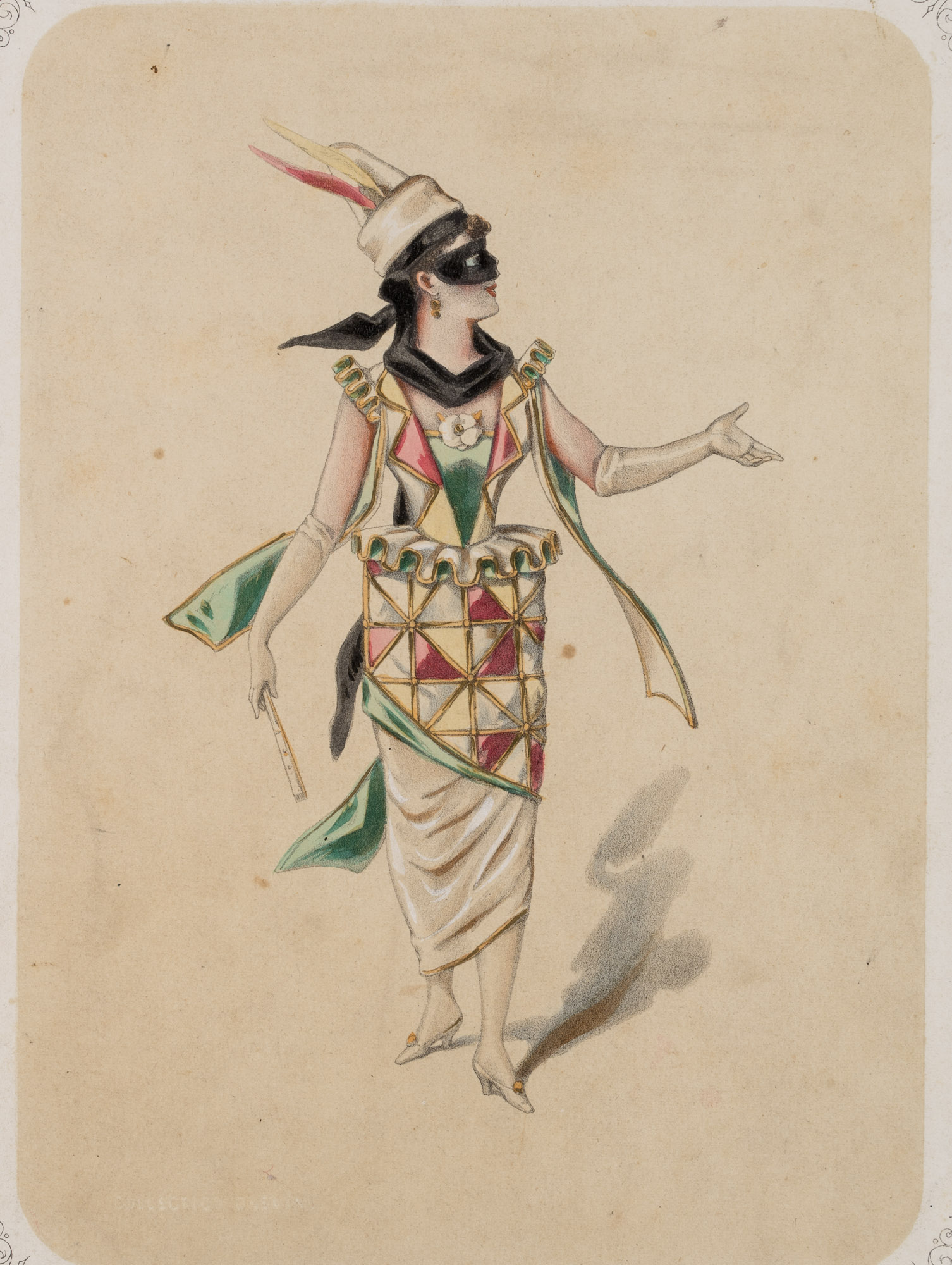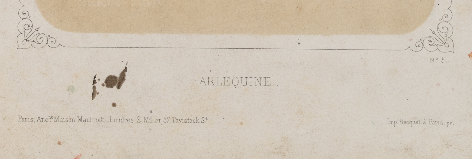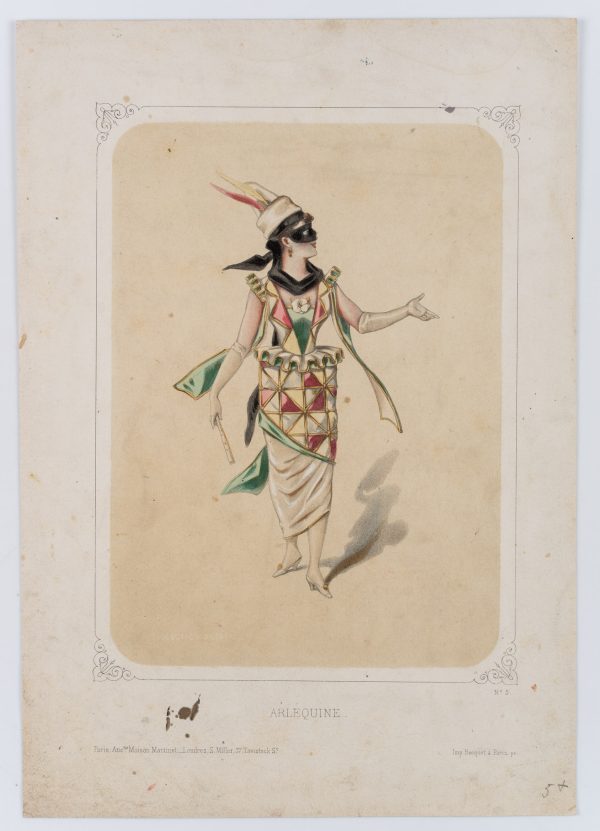 Unbekannt (19. Jahrhundert), Arlequine’. Darstellung eines weiblichen Harlekins, Närrin, Ganzkörper, 19. Jahrhundert, Farblithographie