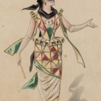 Unknown (19th century), Arlequine’ Representation of a female harlequin, fool, full body, 19th century, Colour lithography