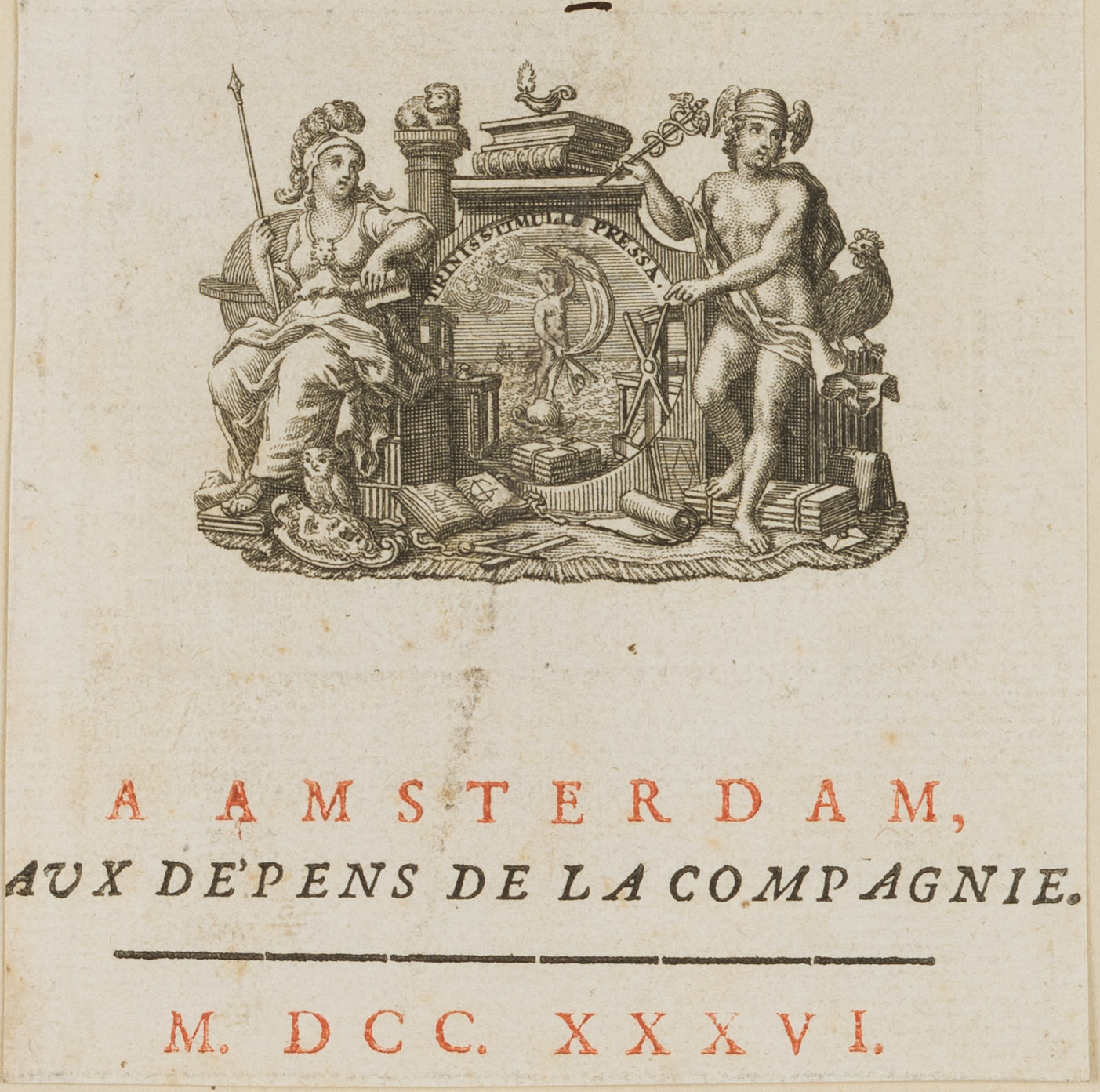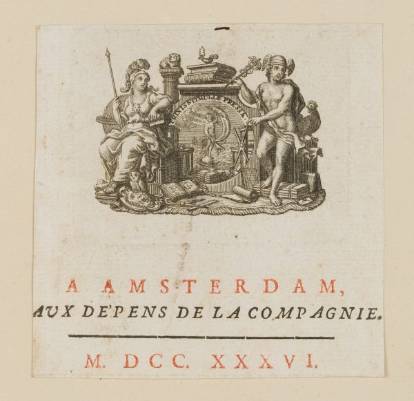 - Description: Inscribed below the engraving “A Amsterdam, aux depens de la compagnie MDCCXXXVI”. The sheet carrier bears a watermark: Crown of lilies over pencil horn | Watermark: Crown of lilies over pencil horn