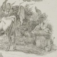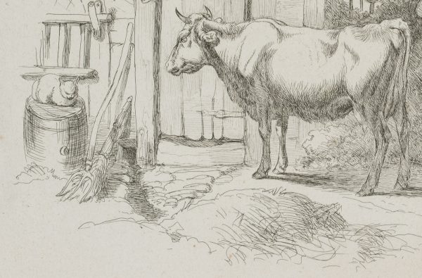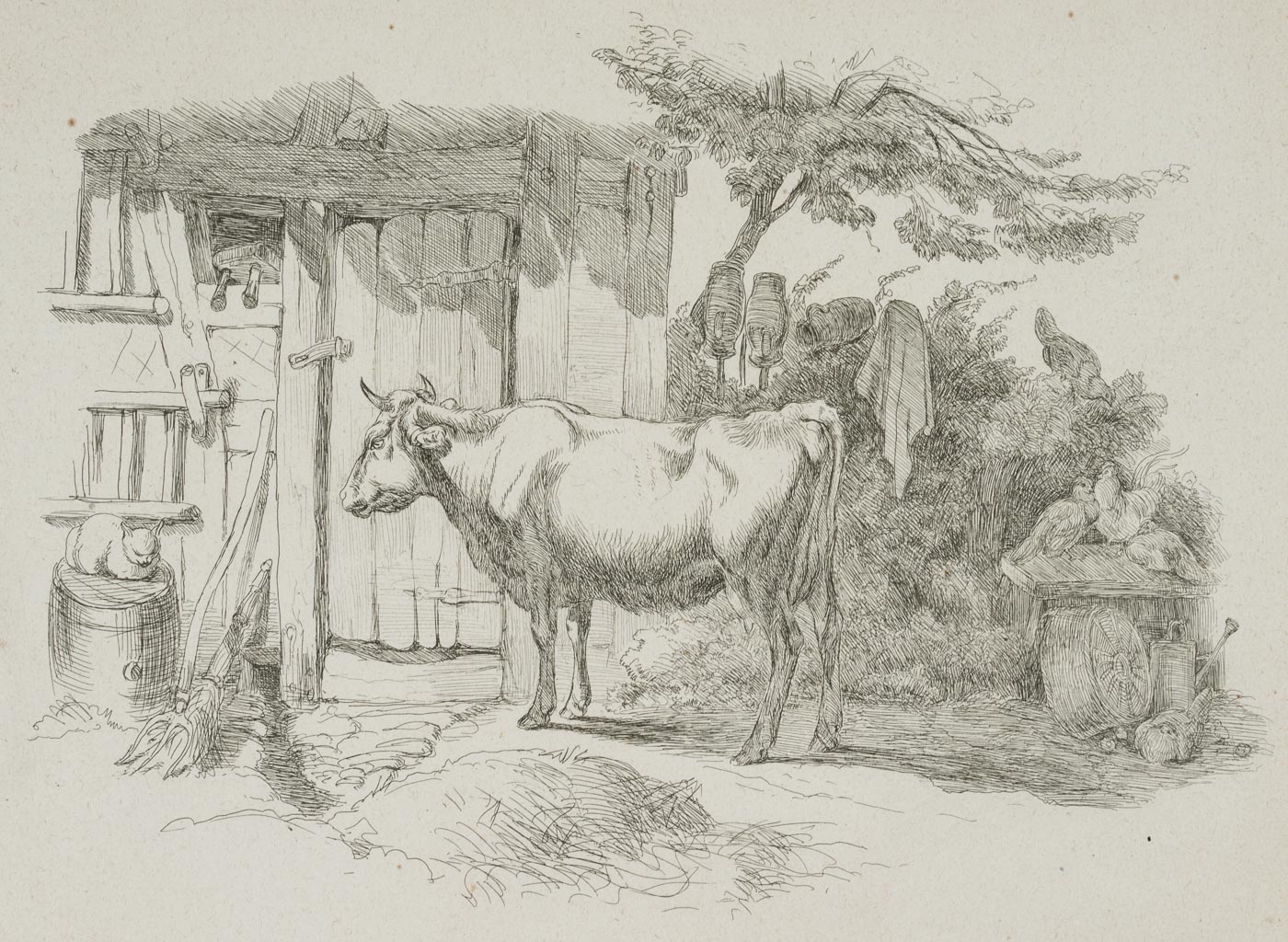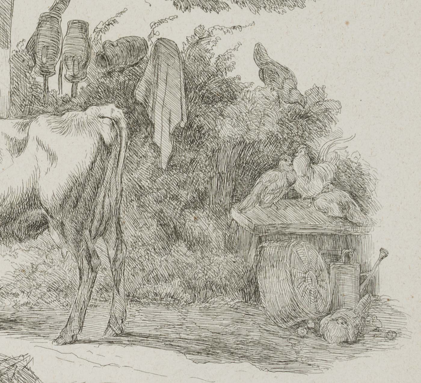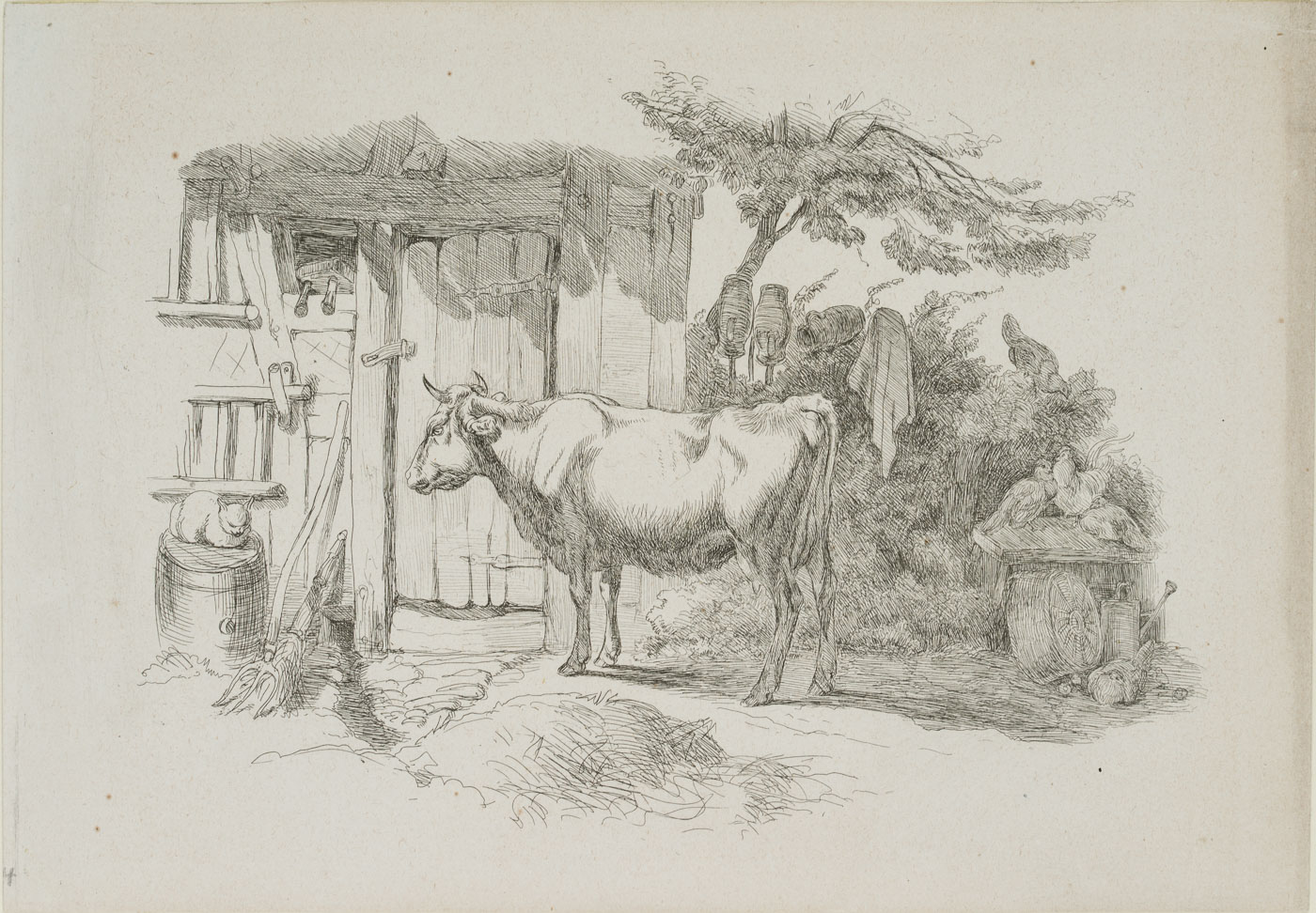 Unknown (19th century), Rural scene with cow and chickens, c. 1820, Etching