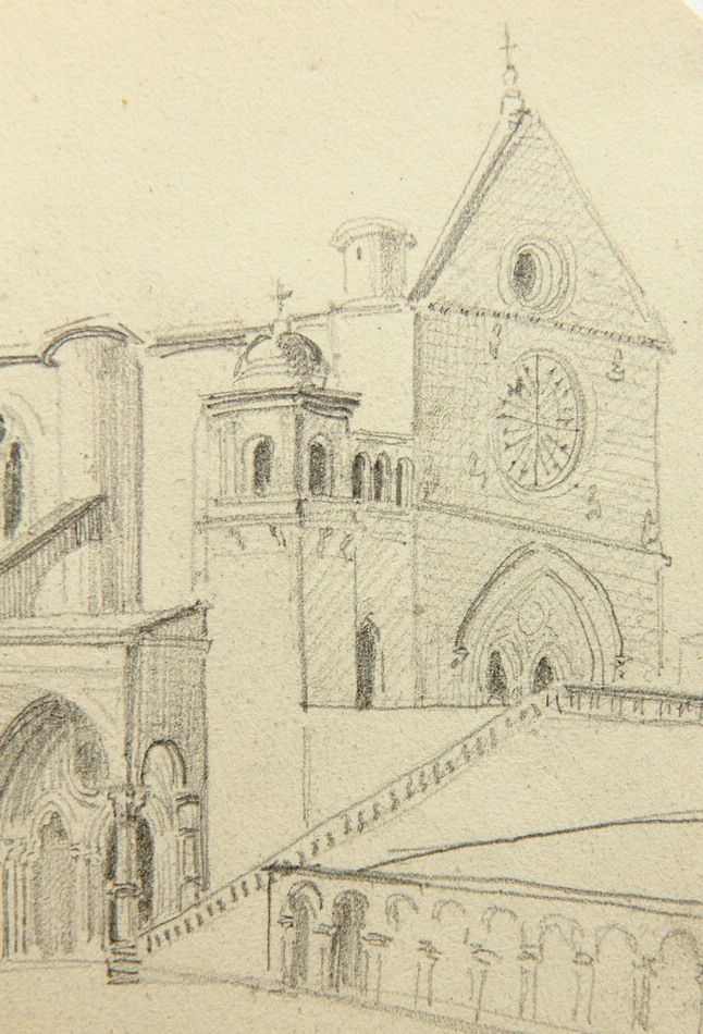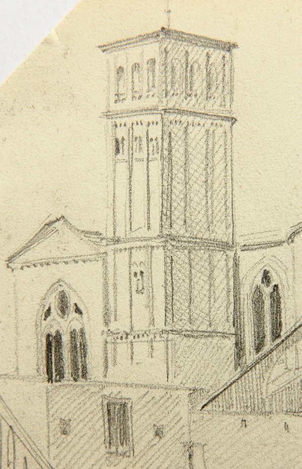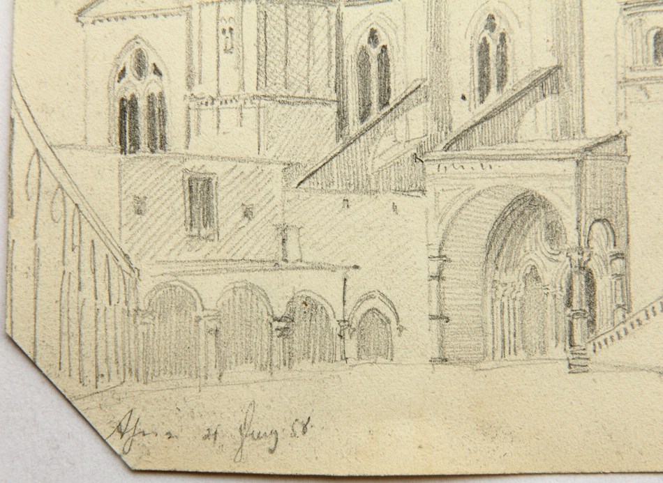 - Inscription: Inscribed and dated lower left: “Assisi im Aug 58”. The sheet comes from the sketchbook of a travelling artist who travelled in Italy around 1858.