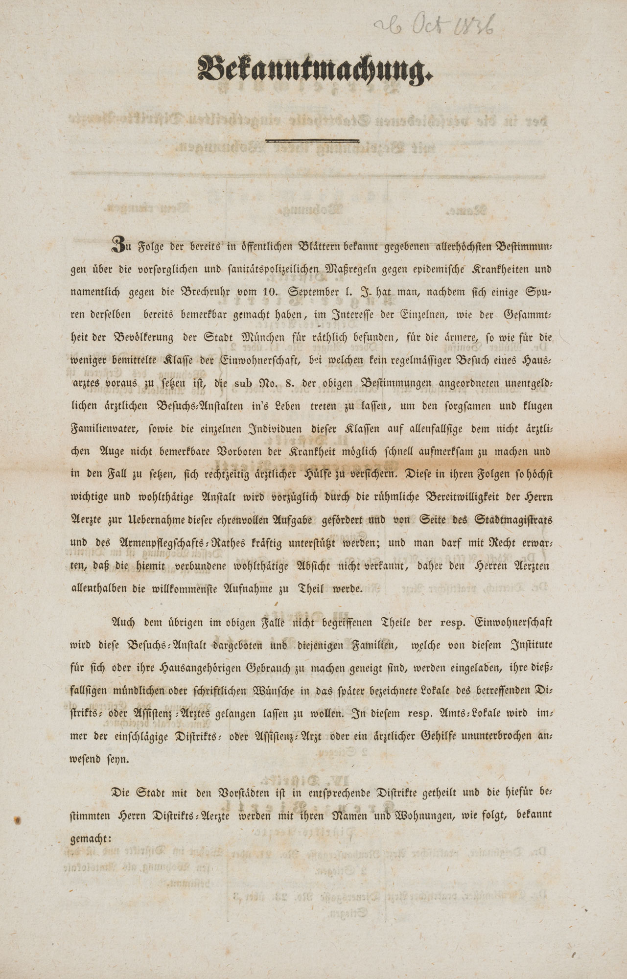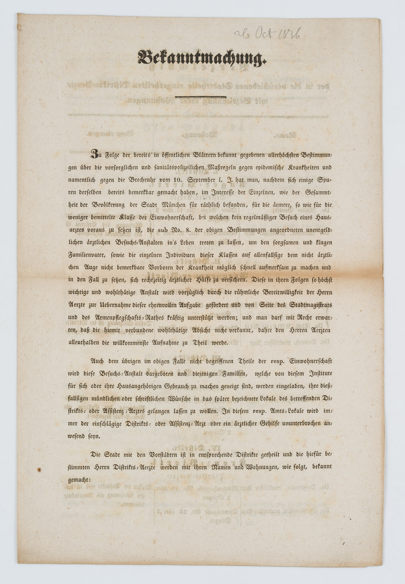 • Schlagworte: Krankheit, Cholera, Bekanntmachung, Infektionskrankheit, Epidemie, Stadtbilder, Politik, Deutschland, Gegenständlich, 1800-1849