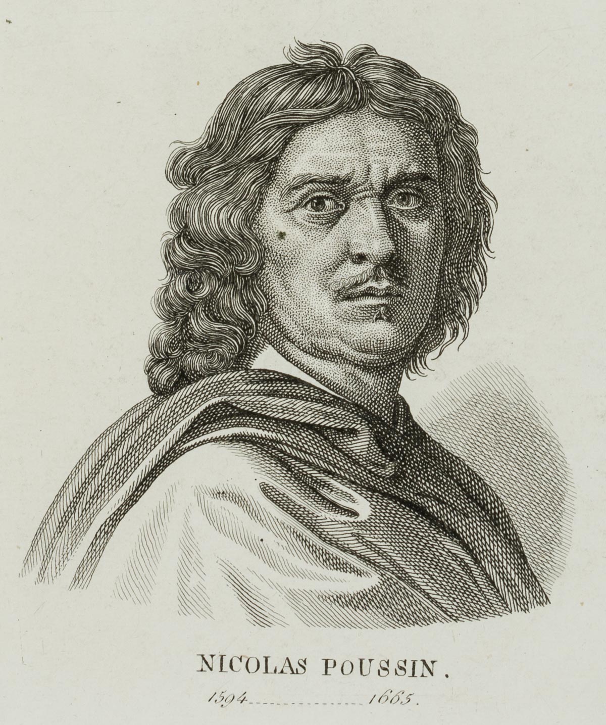 Unbekannt (19. Jahrhundert), Bildnis d. Barockmalers N. Poussin, 19. Jahrhundert, Kupferstich