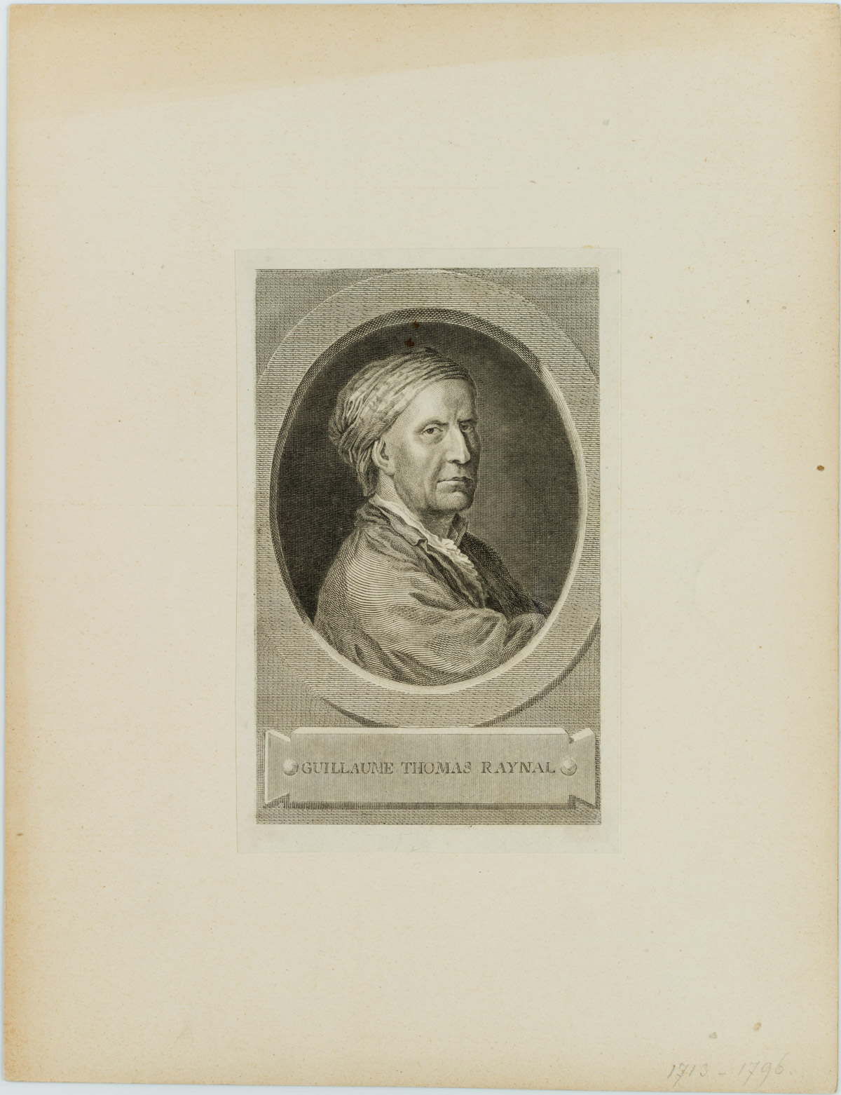 - Description: without designation. Depiction of the French writer Guillaume Thomas Raynal. He became famous for his Tale of Two Indies (1770), one of the most widely read writings of the late Enlightenment.