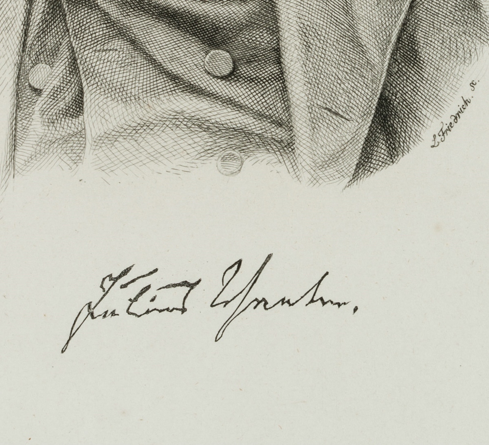 - Bezeichnung: Unterhalb der Darstellung ist die faksimilierte Signatur des Porträtierten zu sehen.