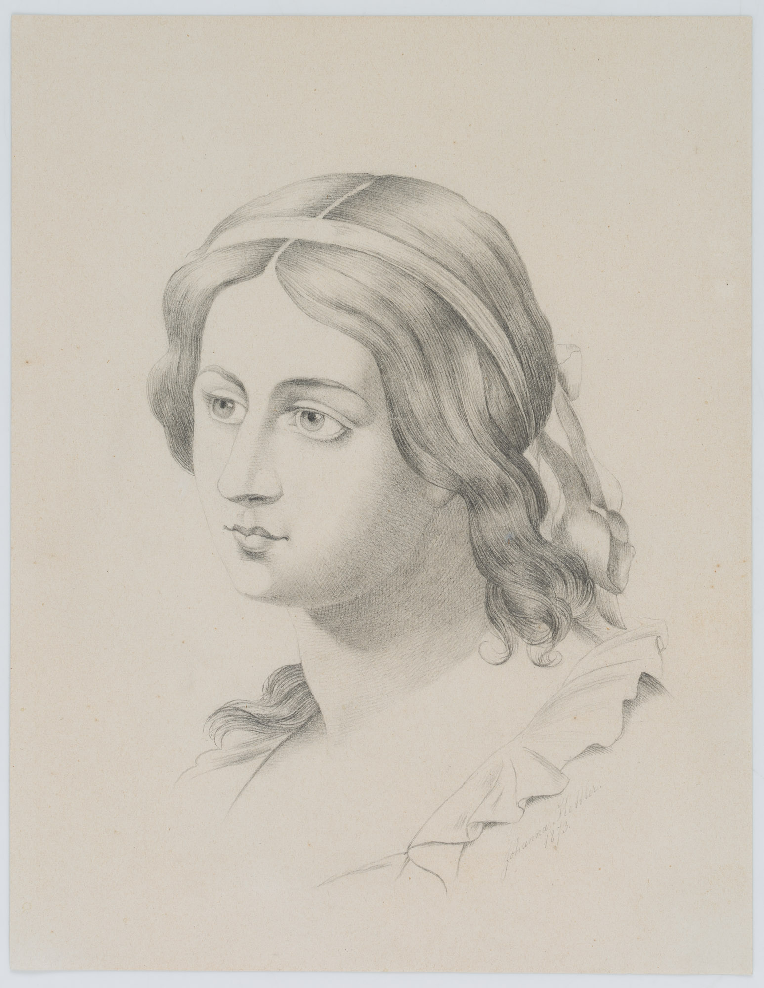Unknown (19th century), Portrait of Johanna Kettler with hair ribbon, 1873, Pencil
