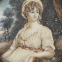 Unknown (19th century), Portrait miniature, Lady in the park, c. 1850, Watercolor
