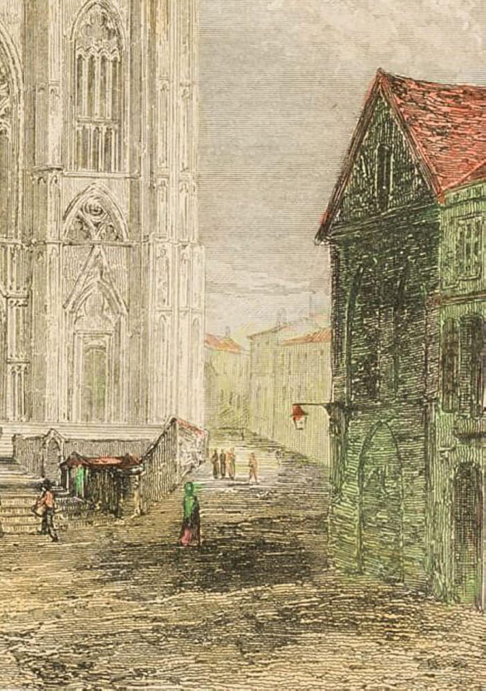 Unbekannt (19. Jahrhundert), Blick auf Kirche St. Michel in Brüssel, 19. Jahrhundert, Stahlstich